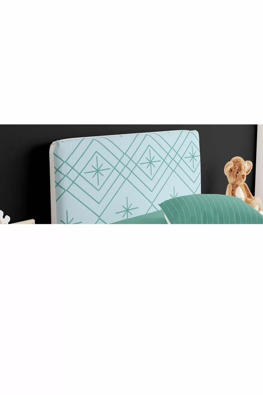 غطاء رأس السرير غرفة شباب أخضر مائي خلفية خطوط خضراء