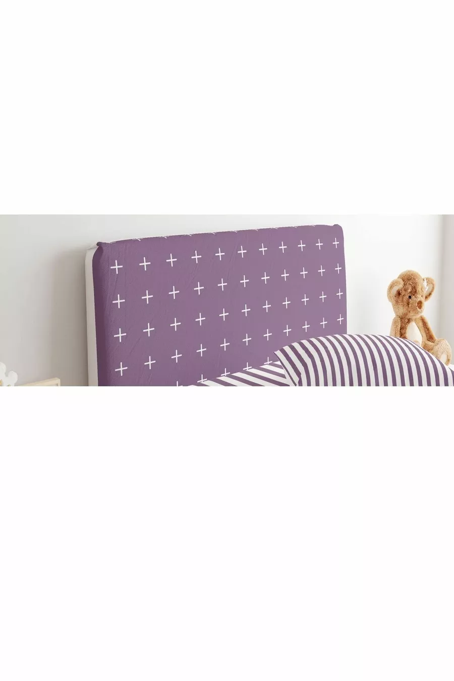 غطاء رأس السرير غرفة شباب بنفسجي وأبيض بعلامات زائد