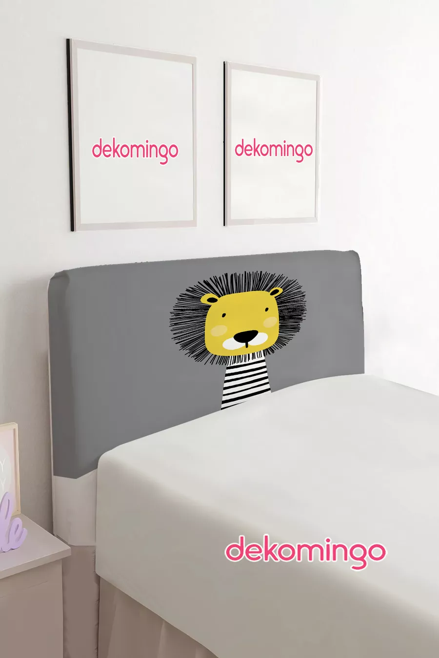 غطاء رأس سرير مع قاعدة بنقشة أسد رمادي (شخص واحد)