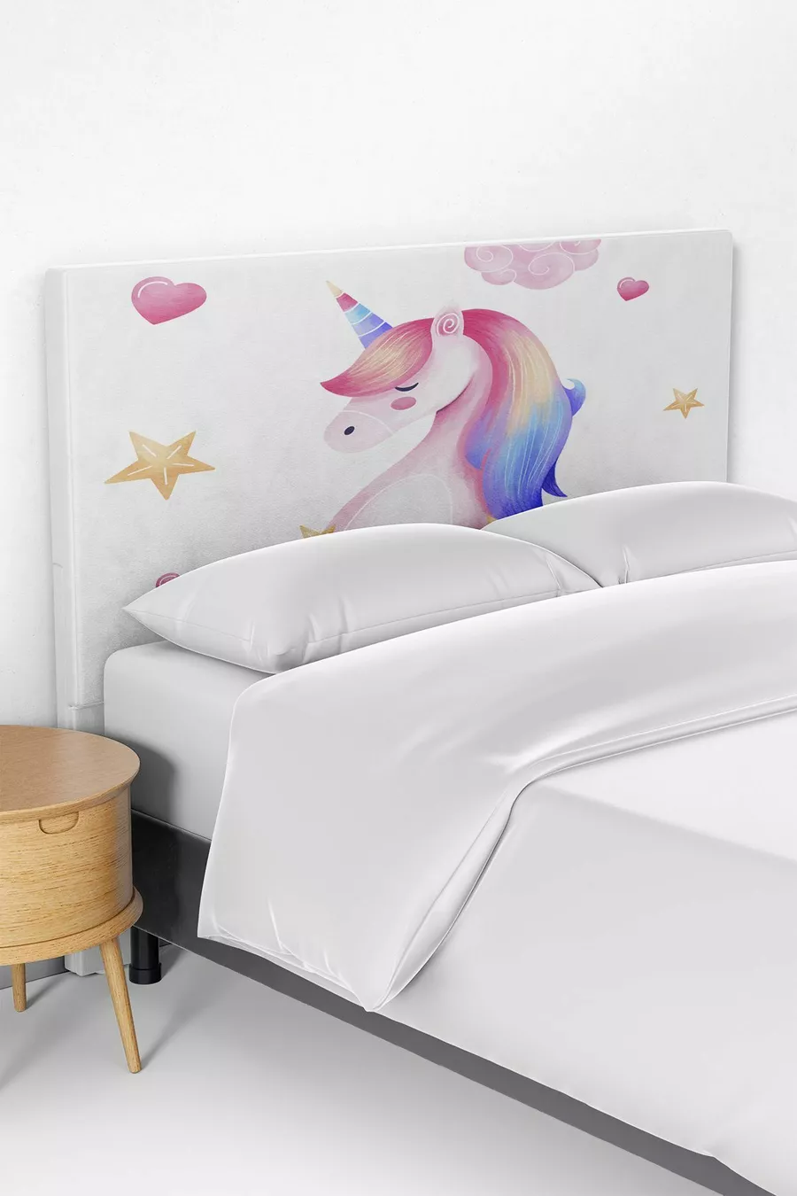 غطاء رأس سرير مع قاعدة لغرفة الأطفال بطبعة الحصان الطائر البنفسجي