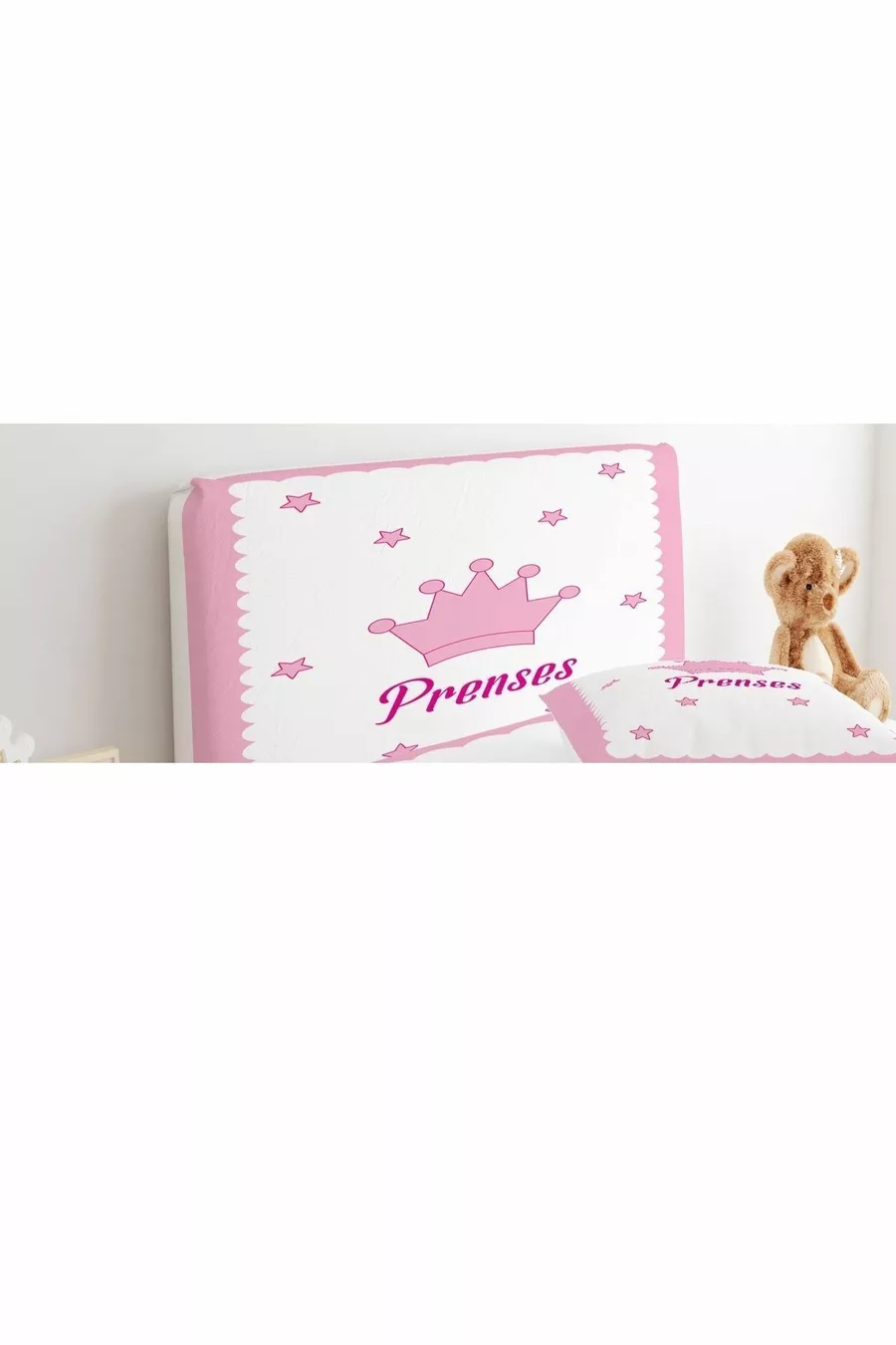 غطاء رأس السرير مكتوب عليه أميرة باللون الوردي
