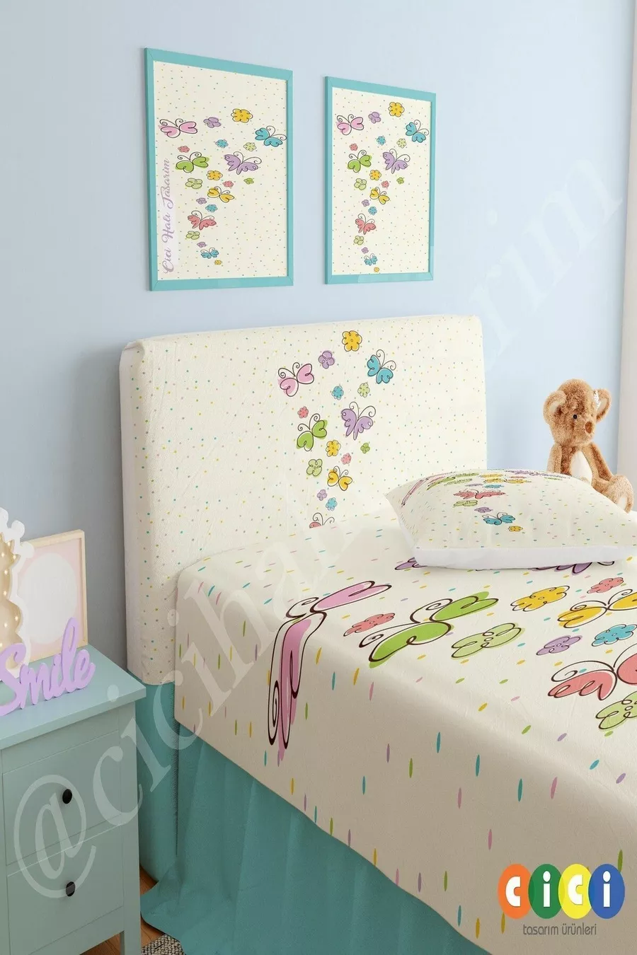 غطاء رأس السرير بنقشة الفراشات الملونة المنقطة
