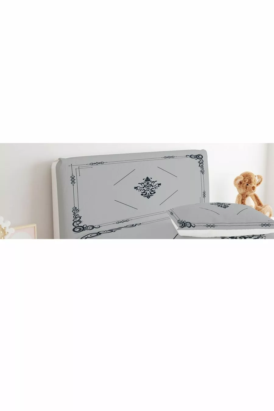 غطاء رأس السرير رمادي اللون بنقشة زخرفية بسيطة
