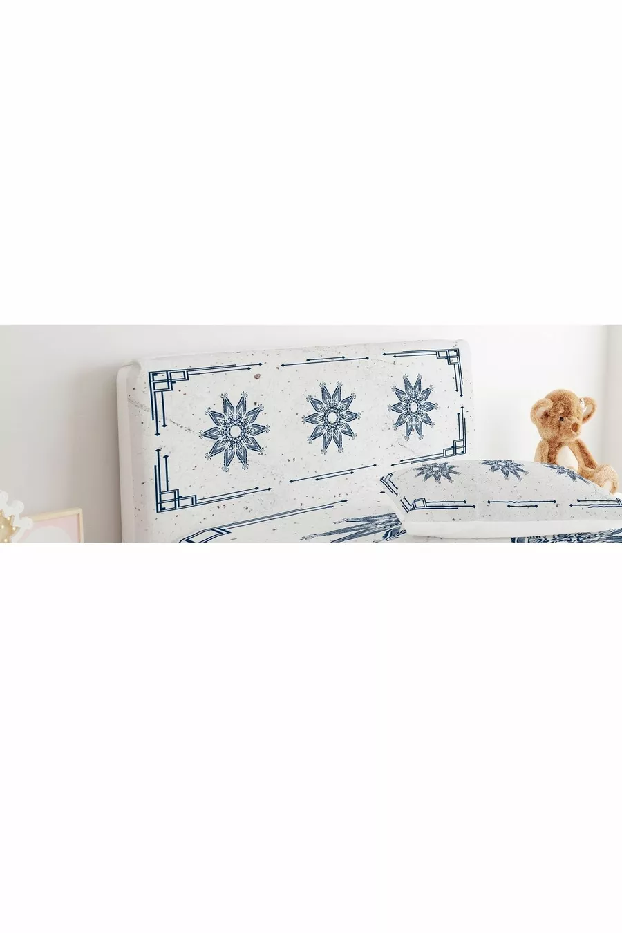 غطاء رأس السرير بمربعات وزوايا مع نجوم في المنتصف وزخرفة ديكورية