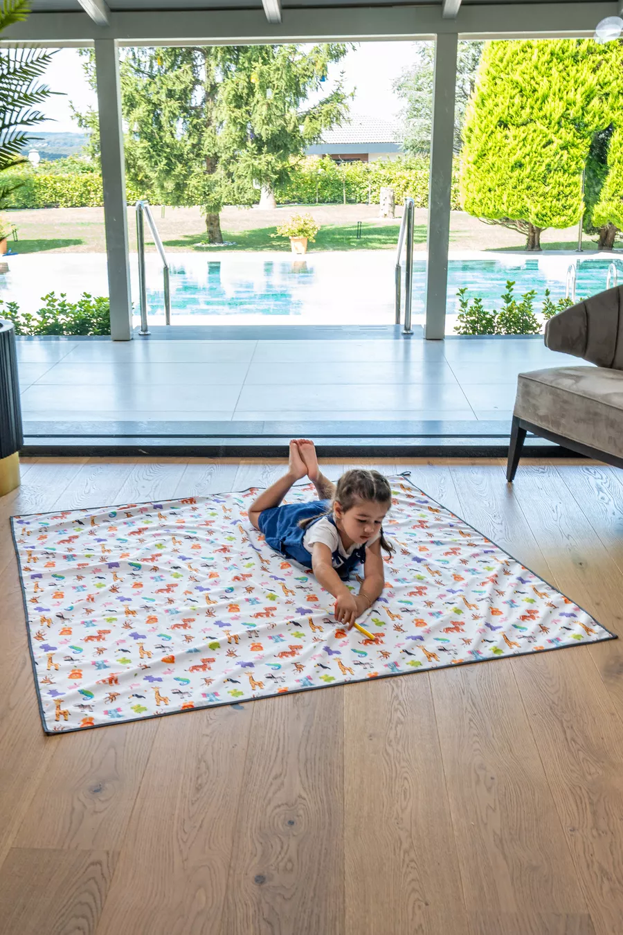 غطاء رعاية الطفل مع قاعدة أنشطة لكرسي الطعام للرضع بنقوش قطط وكلاب وحيوانات