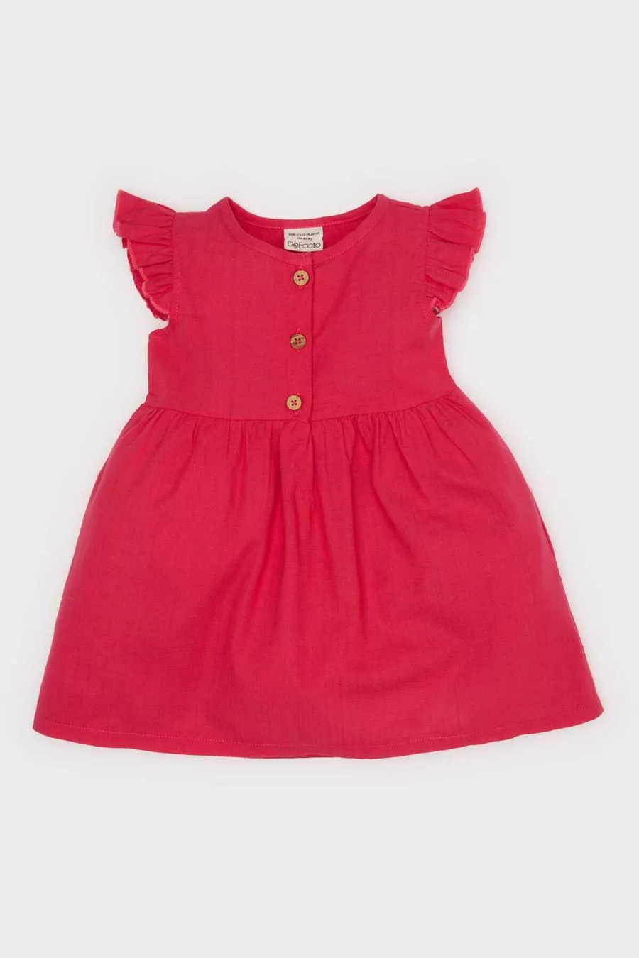 فستان بسيط قصير الأكمام بمظهر الكتان للرضّاعات SM