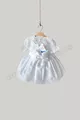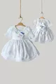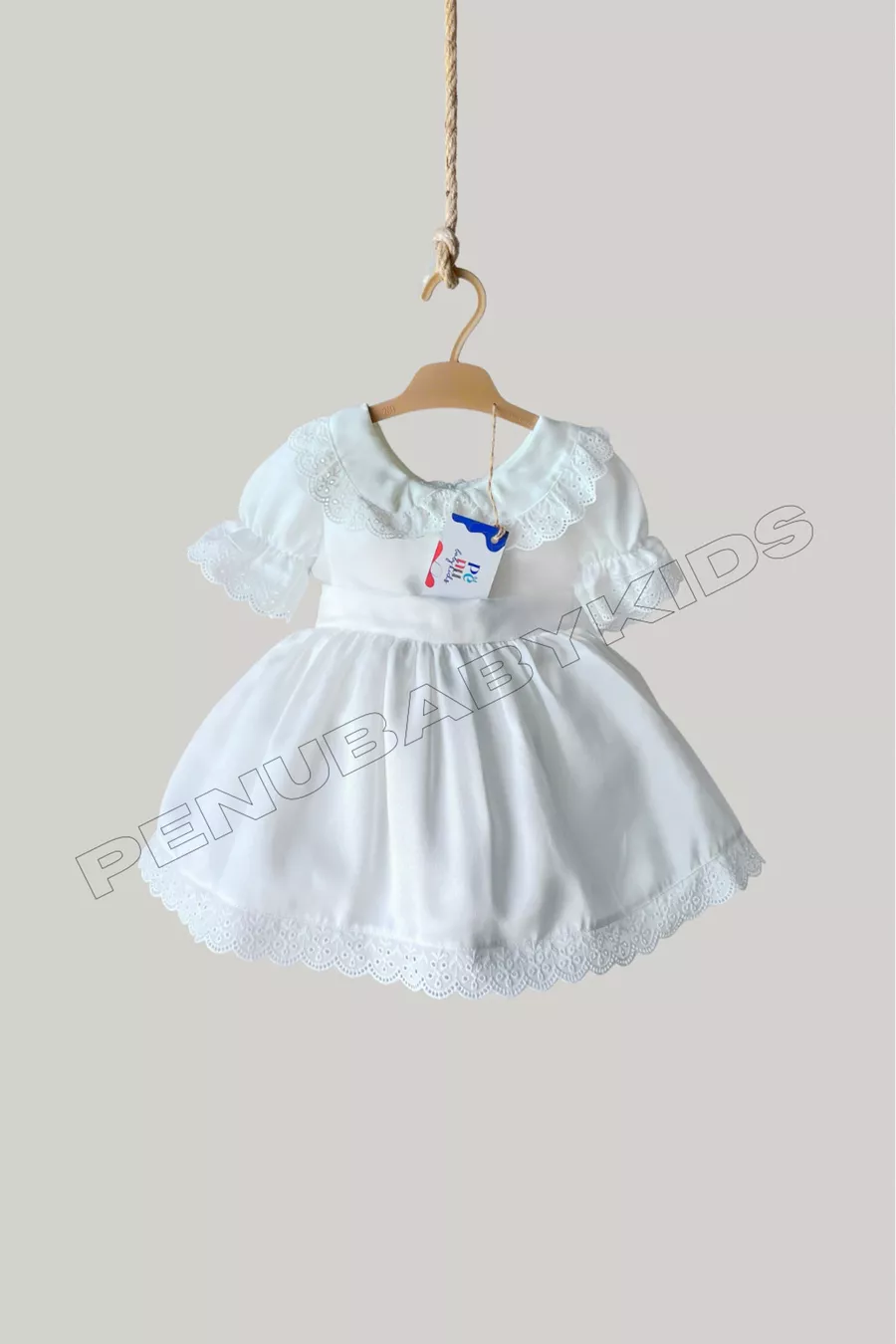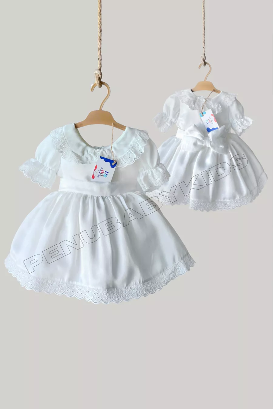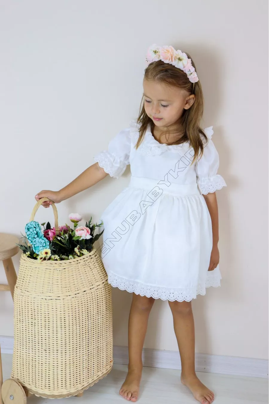 فستان بيبي بنات بأكمام قصيرة وقوس أبيض على اللون الأبيض - كاندي
