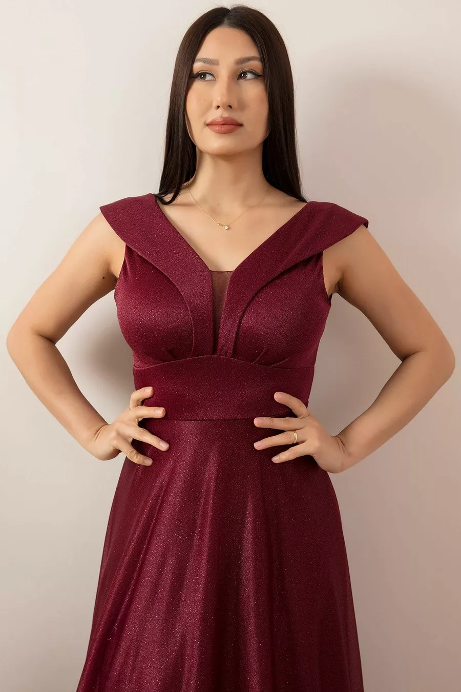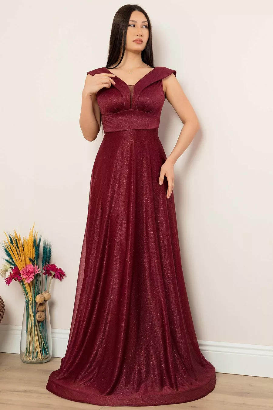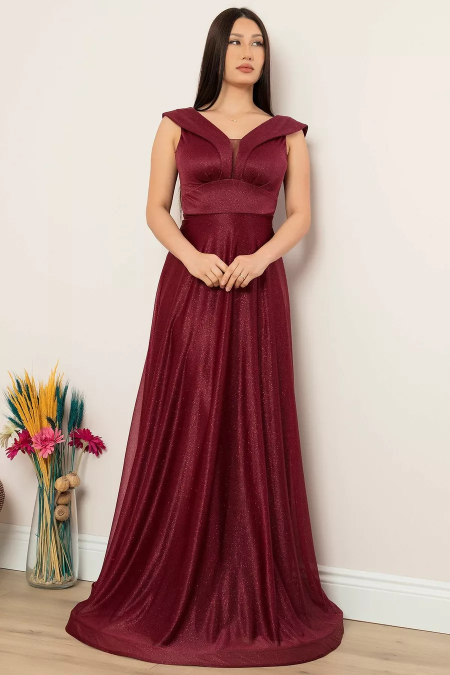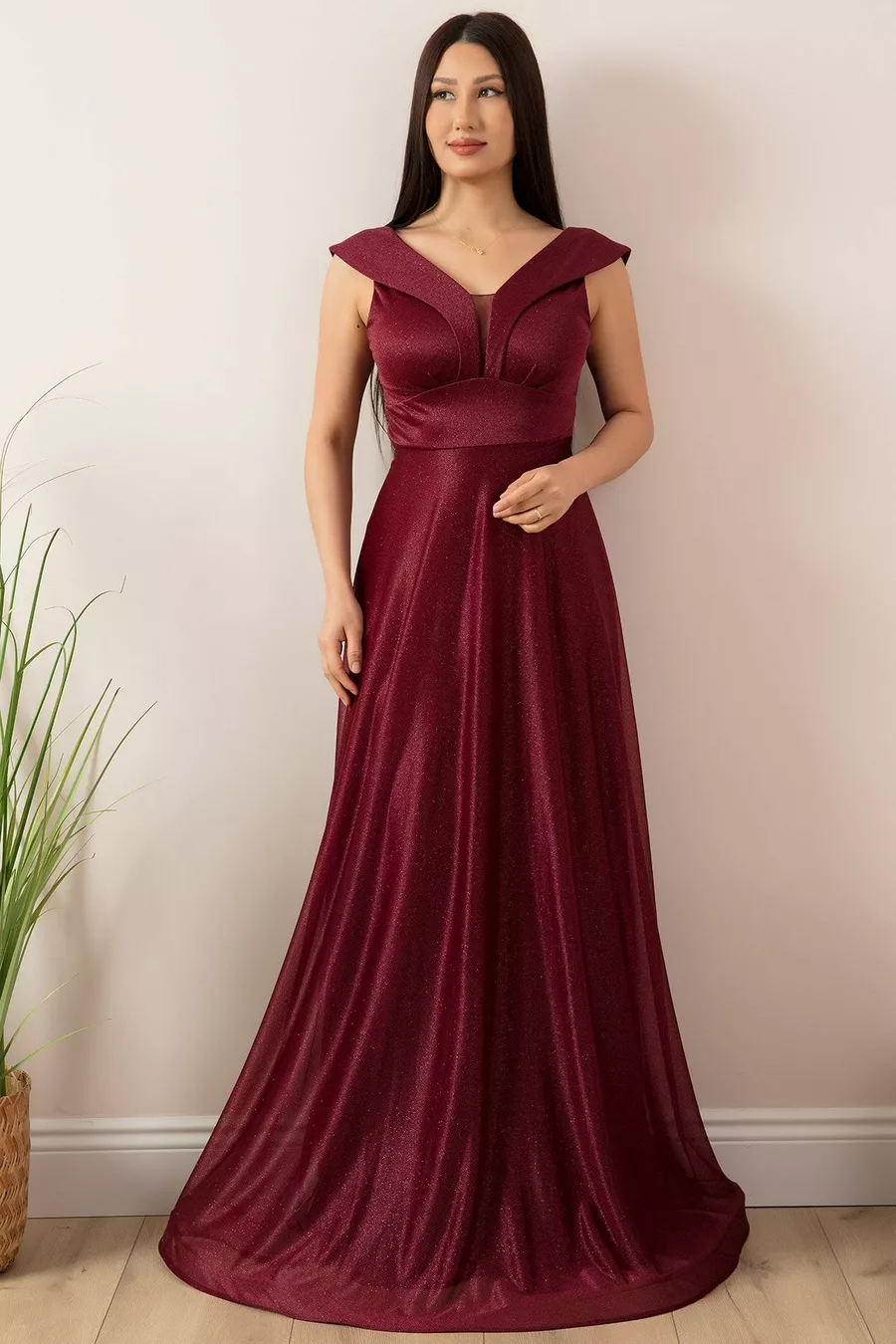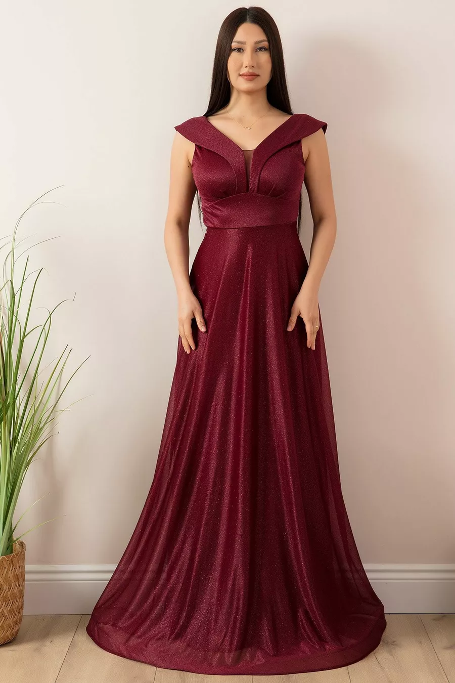 اللون:عنابي طول الأكمام:طويل الحجم: ماكسي نوع نسج:تول مكون المواد:100٪ بوليستر