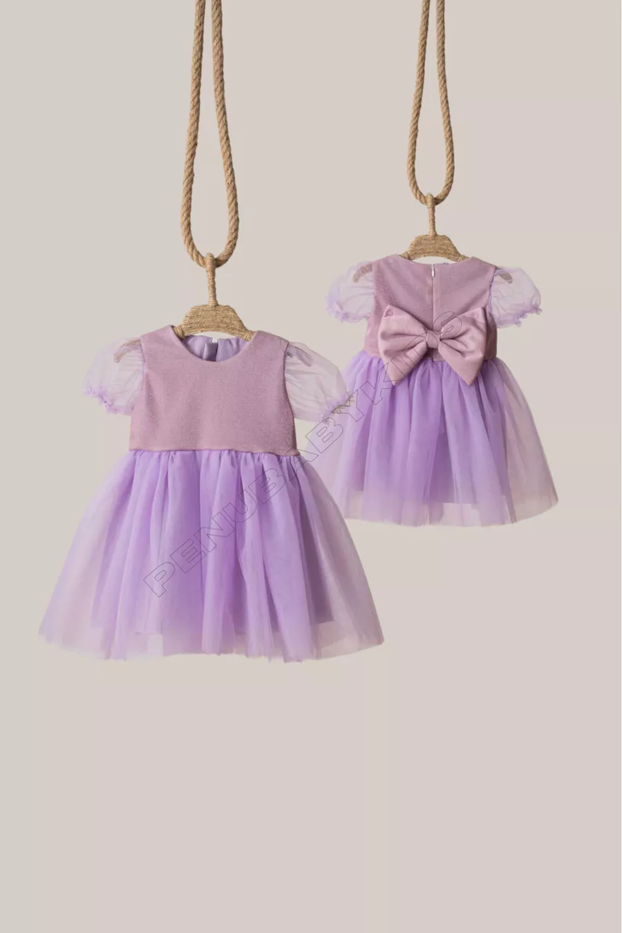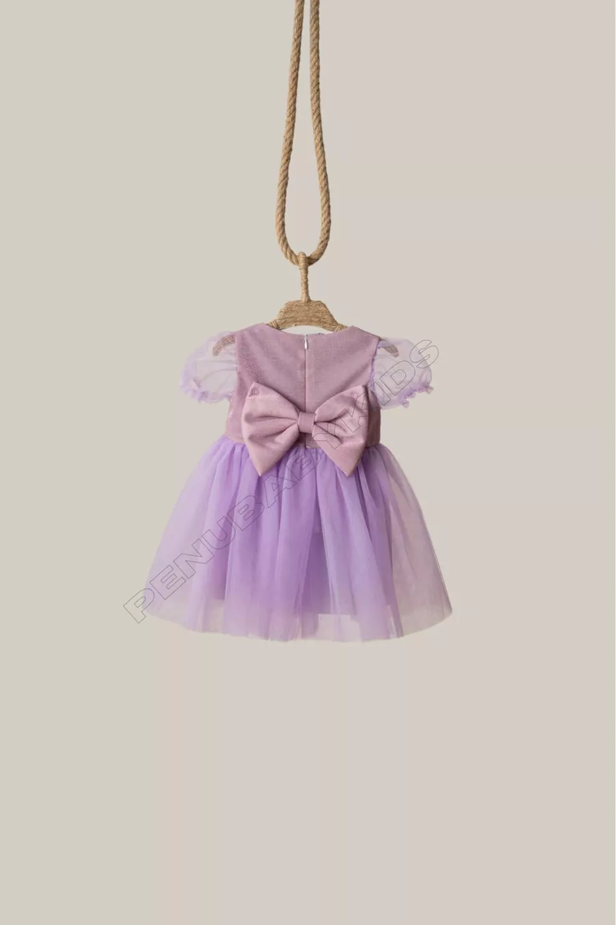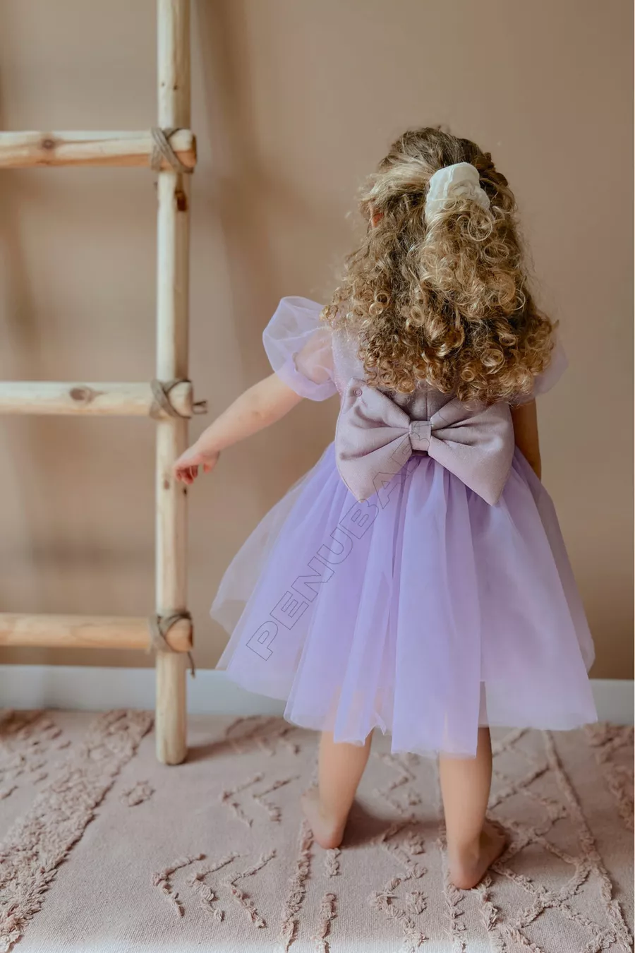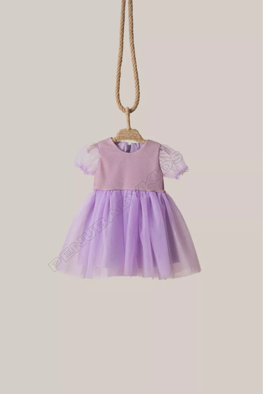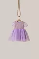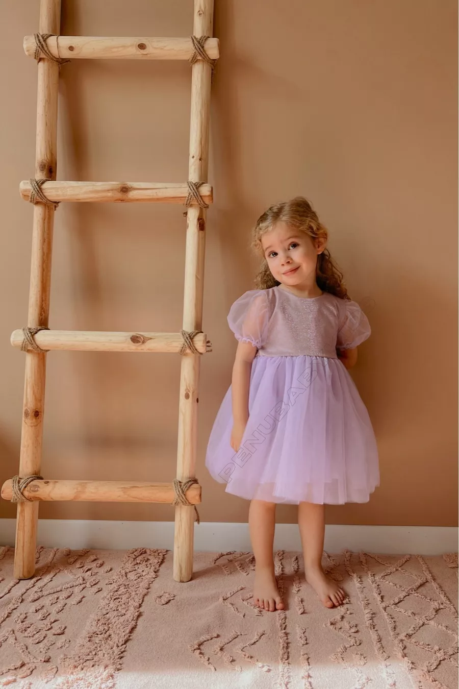فستان طفلة قصير بأكمام بالون من التُل البنفسجي مع تول تحت الإبط - سندريلا