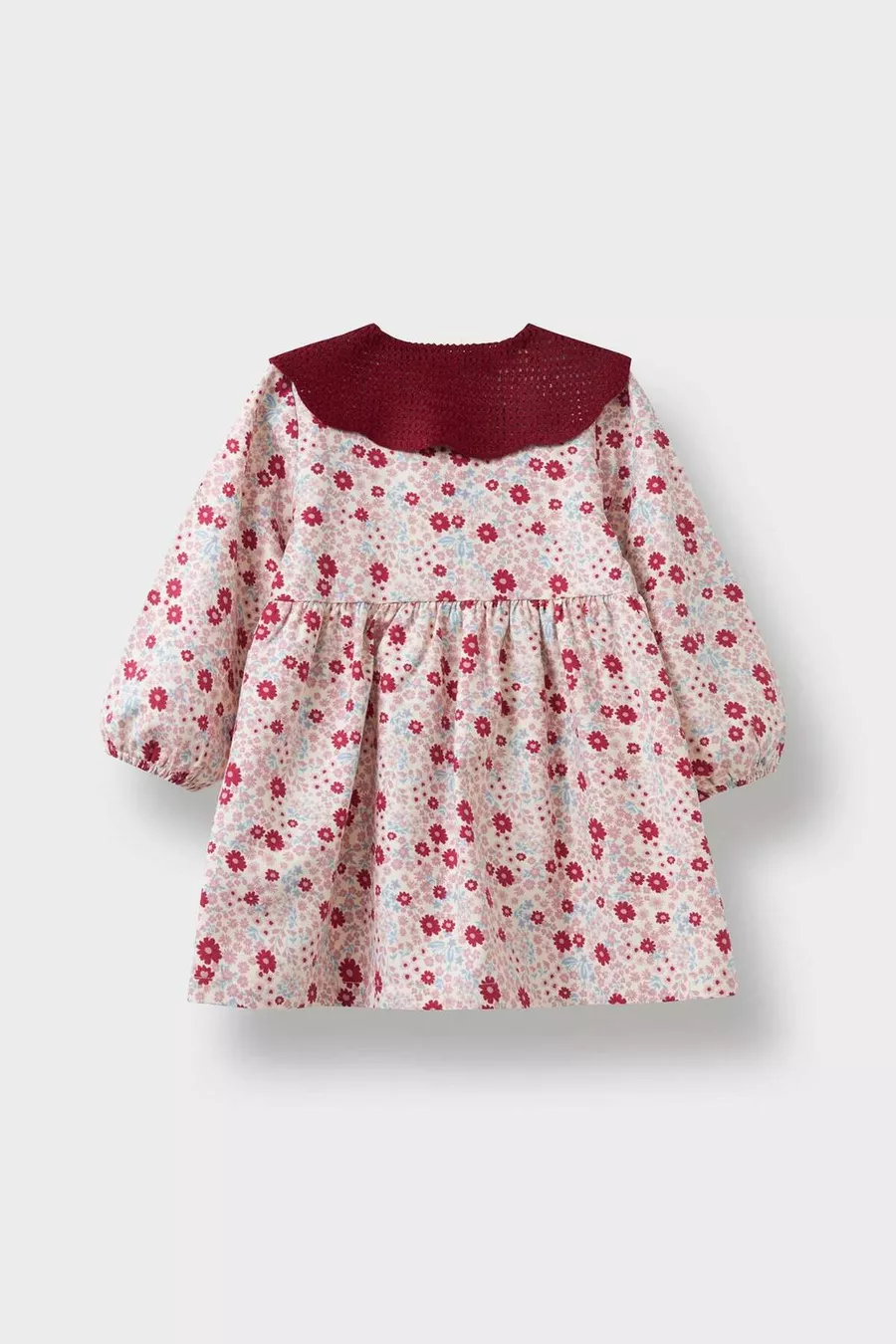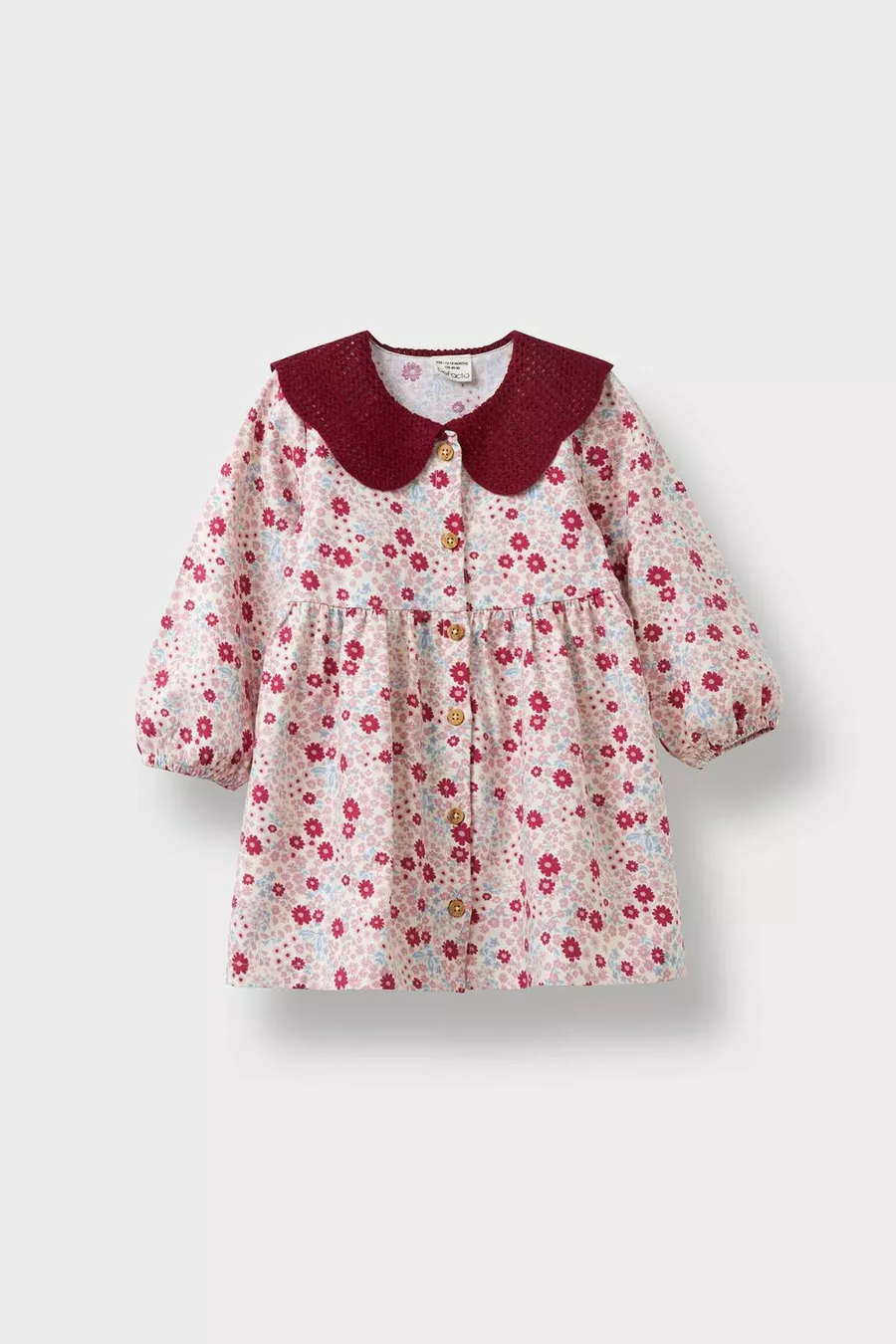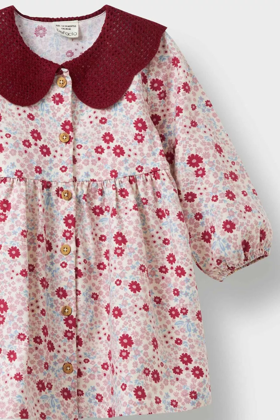 فستان طفلة حديث بأكمام طويلة وياقة مربوطة بنسيج واسع وزهور وأزرار، موديل AU