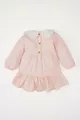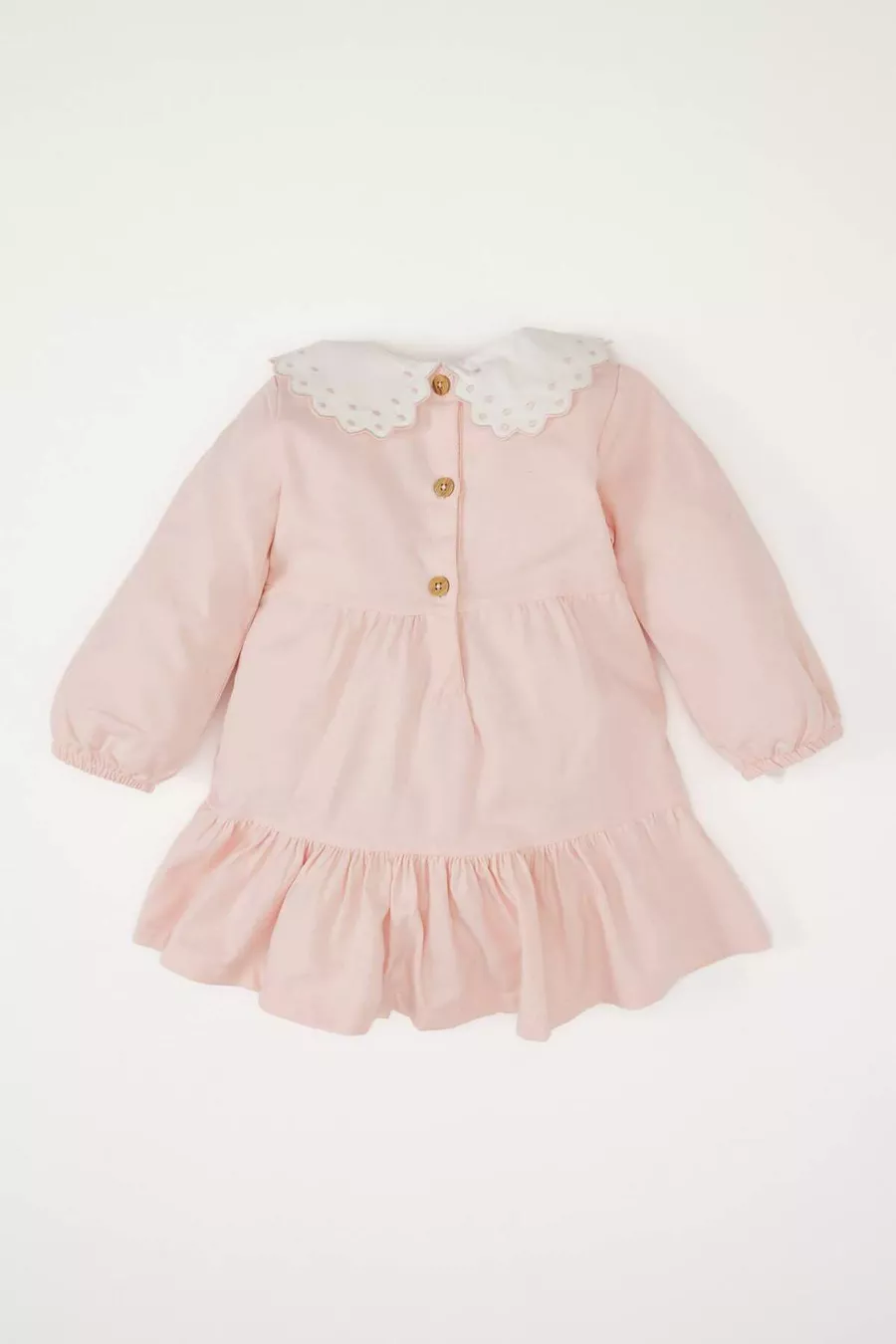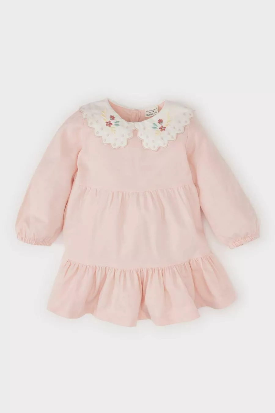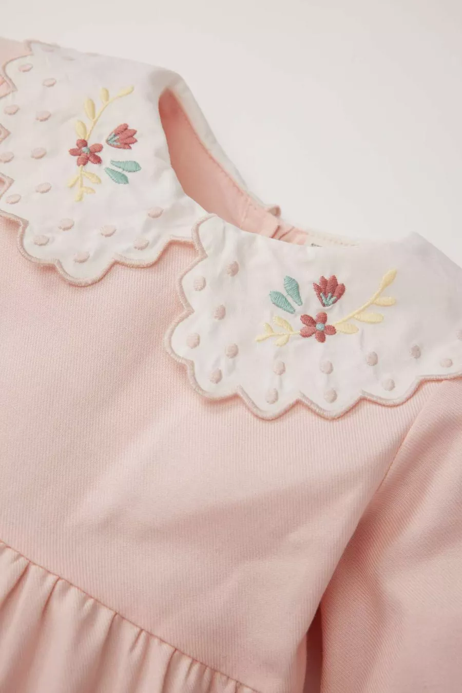 فستان طويل الأكمام للبنات حديثي الولادة بياقة بيبي وتطريز أزهار SP