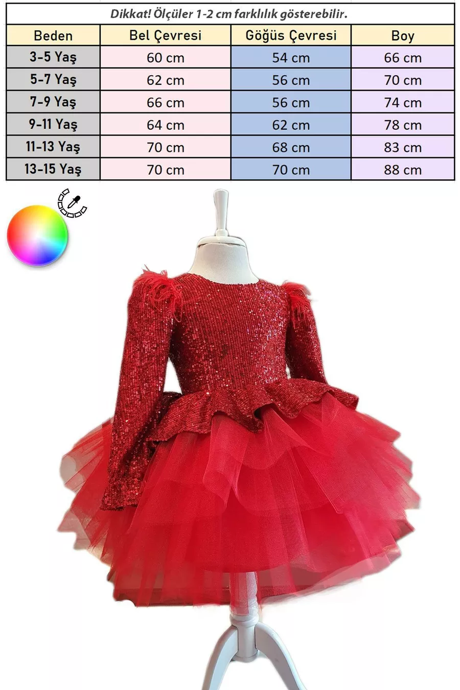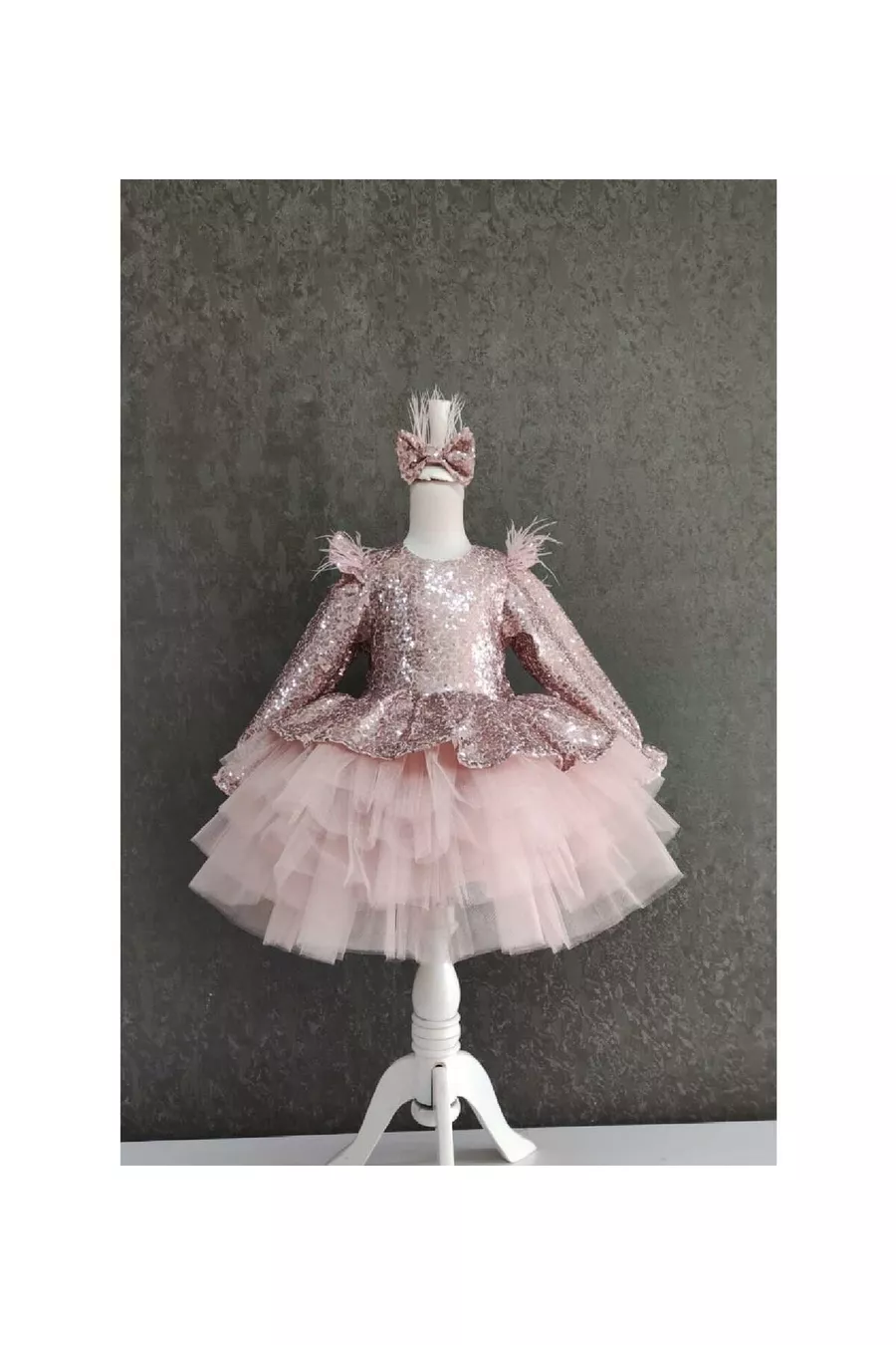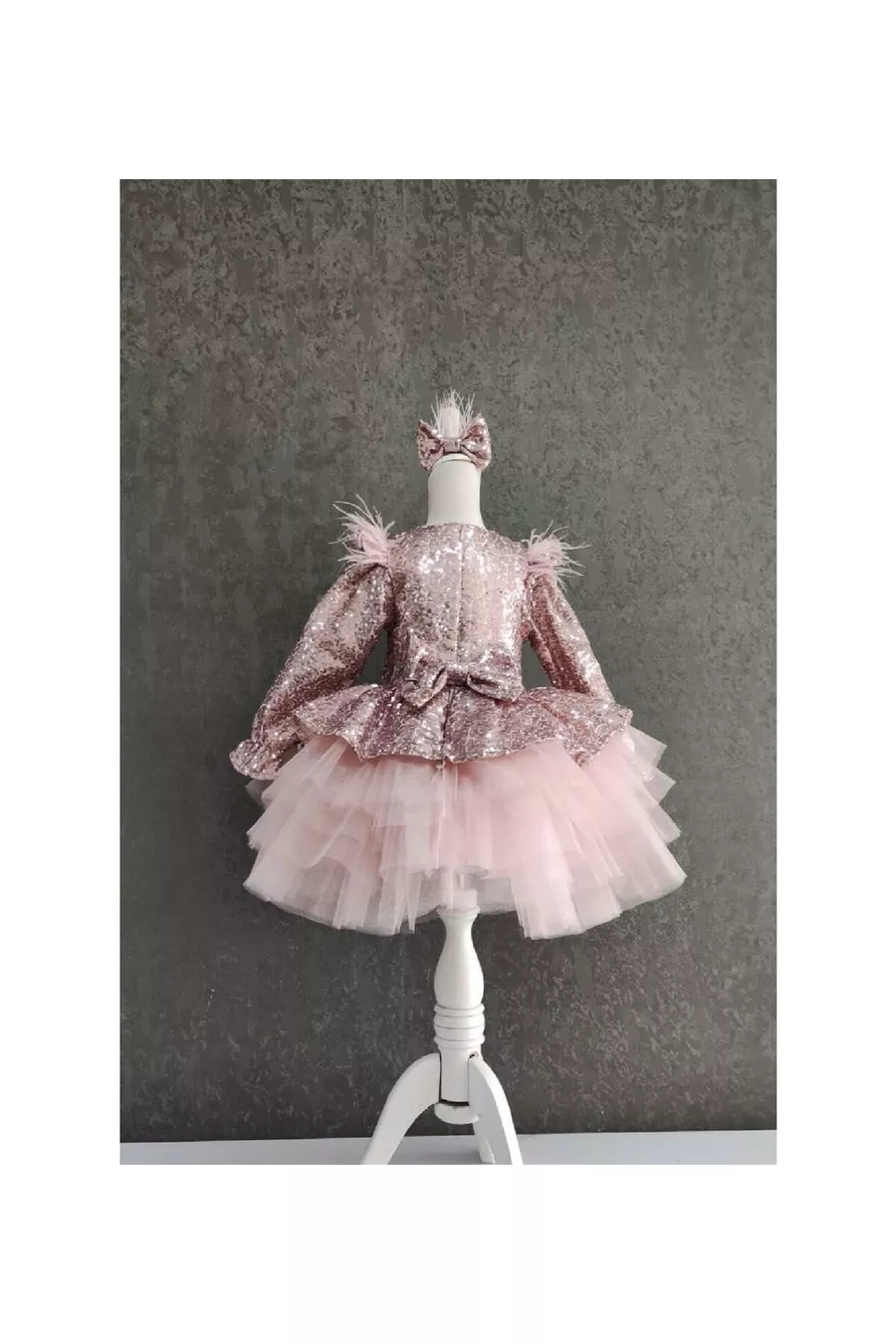 فستان فتيات قصير كتف فروي وظهر مزين بالترتر - فستان سهرة للأطفال - فستان سهرة للبنات - فستان تخرج للأطفال