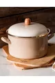 اللون: بيج الحجم/الأبعاد: 22 سم الخاصية: يمكن استخدامه على موقد الحث المادة الخارجية: مينا المادة الداخلية: مينا عدد القطع: قطعة واحدة