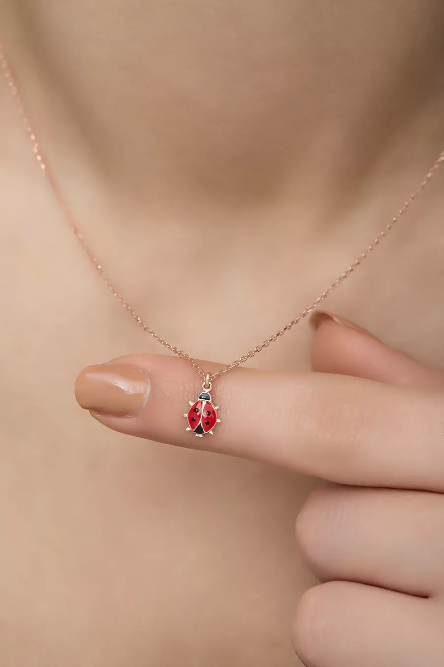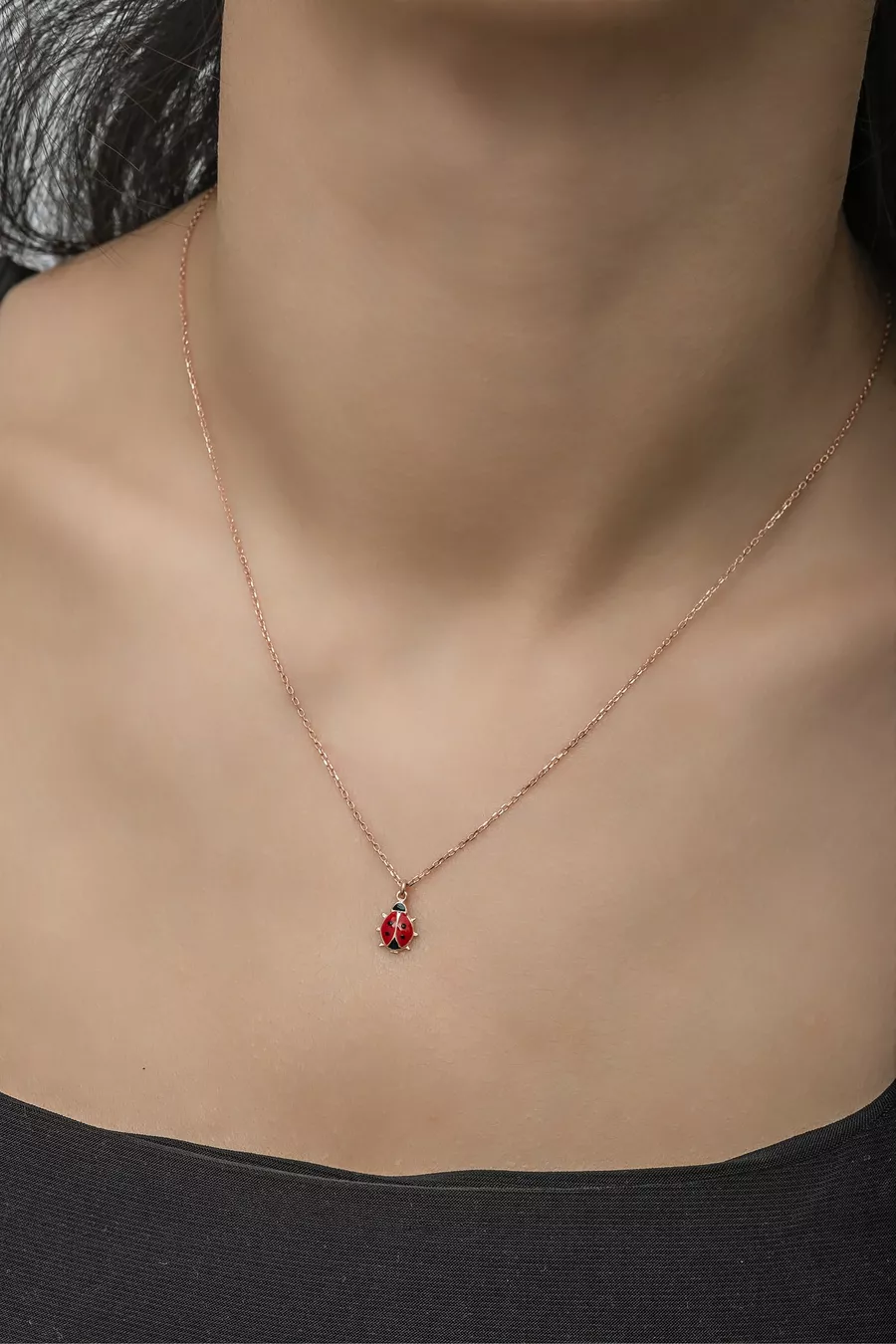 قلادة دعسوقة صغيرة مصنوعة من الفضة المطلية بالمينا الأحمر