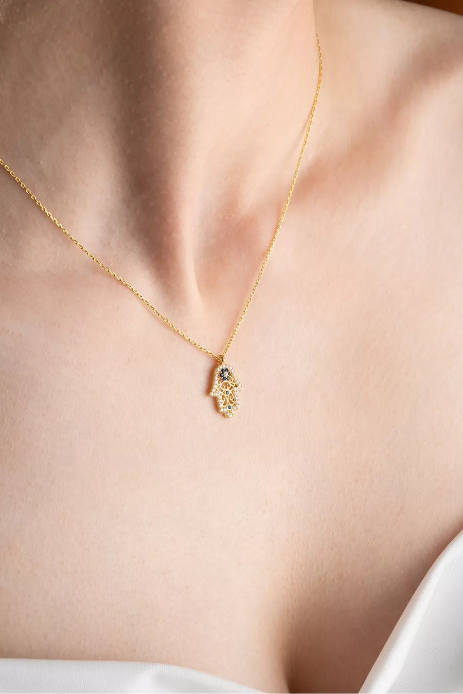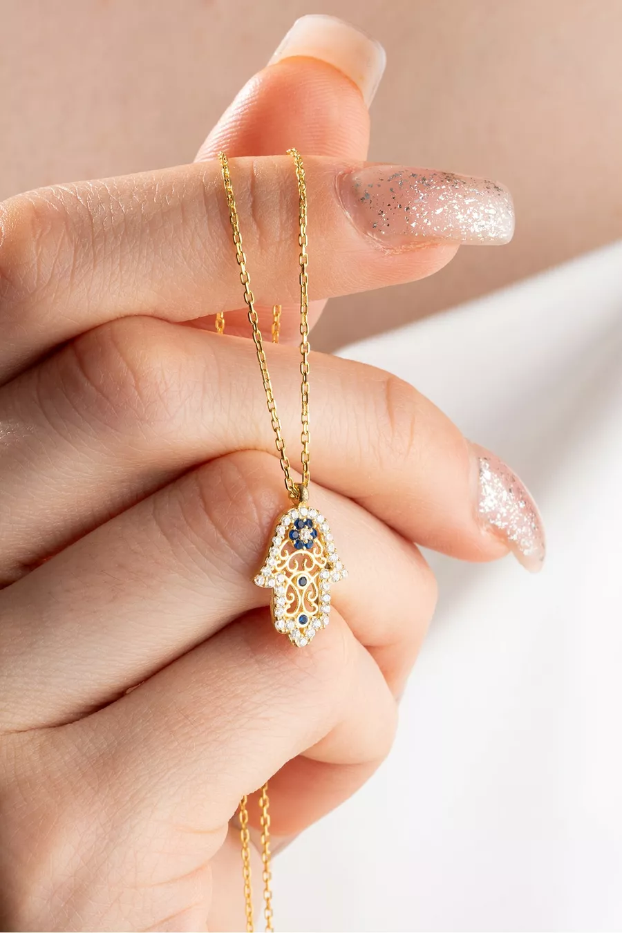 قلادة فضة عيار ذهبية بتصميم يد فاطمة البسيط