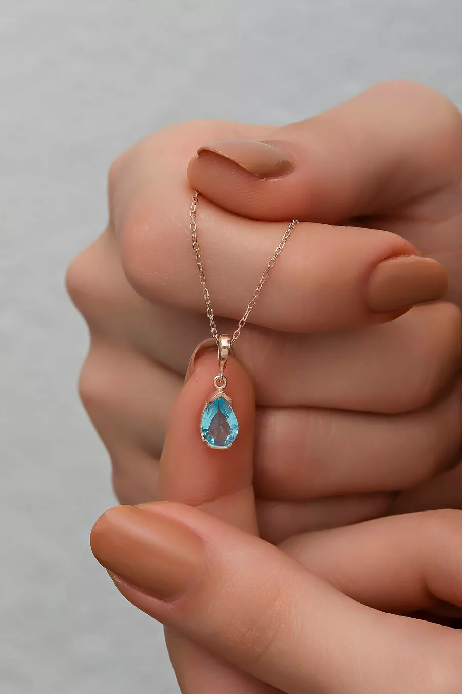 قلادة فضية نسائية مرصعة بحجر الجمشت الأزرق عيار