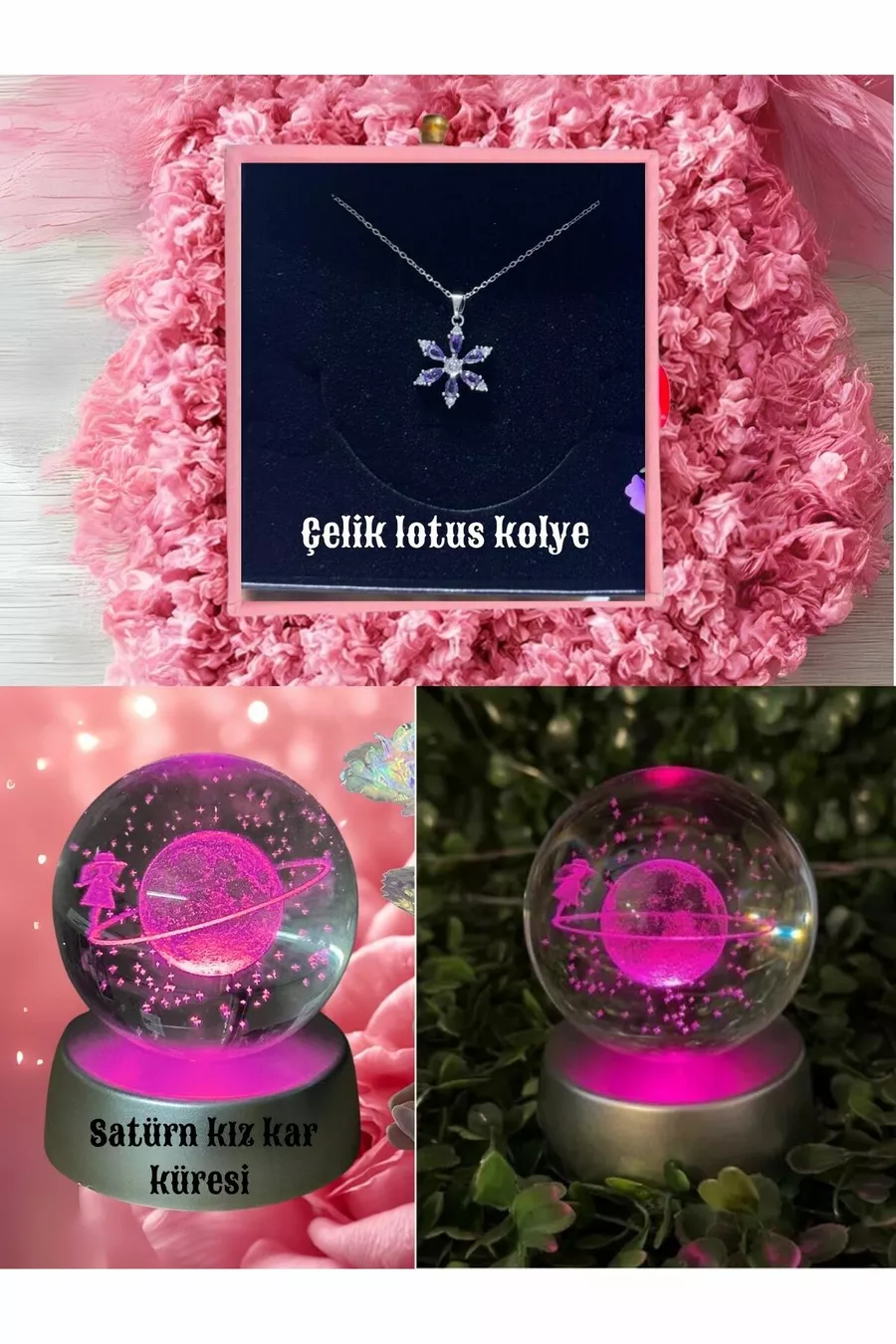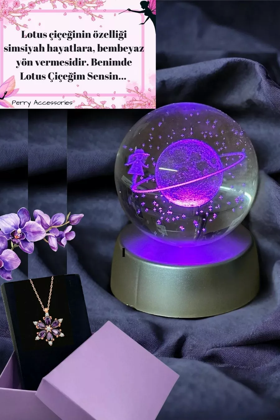 قلادة لوتس مور من الفولاذ المقاوم للصدأ، كرة ثلاثية الأبعاد لكوكب زحل تغير اللون للبنات، مجموعة هدايا، هدية ذكرى الميلاد