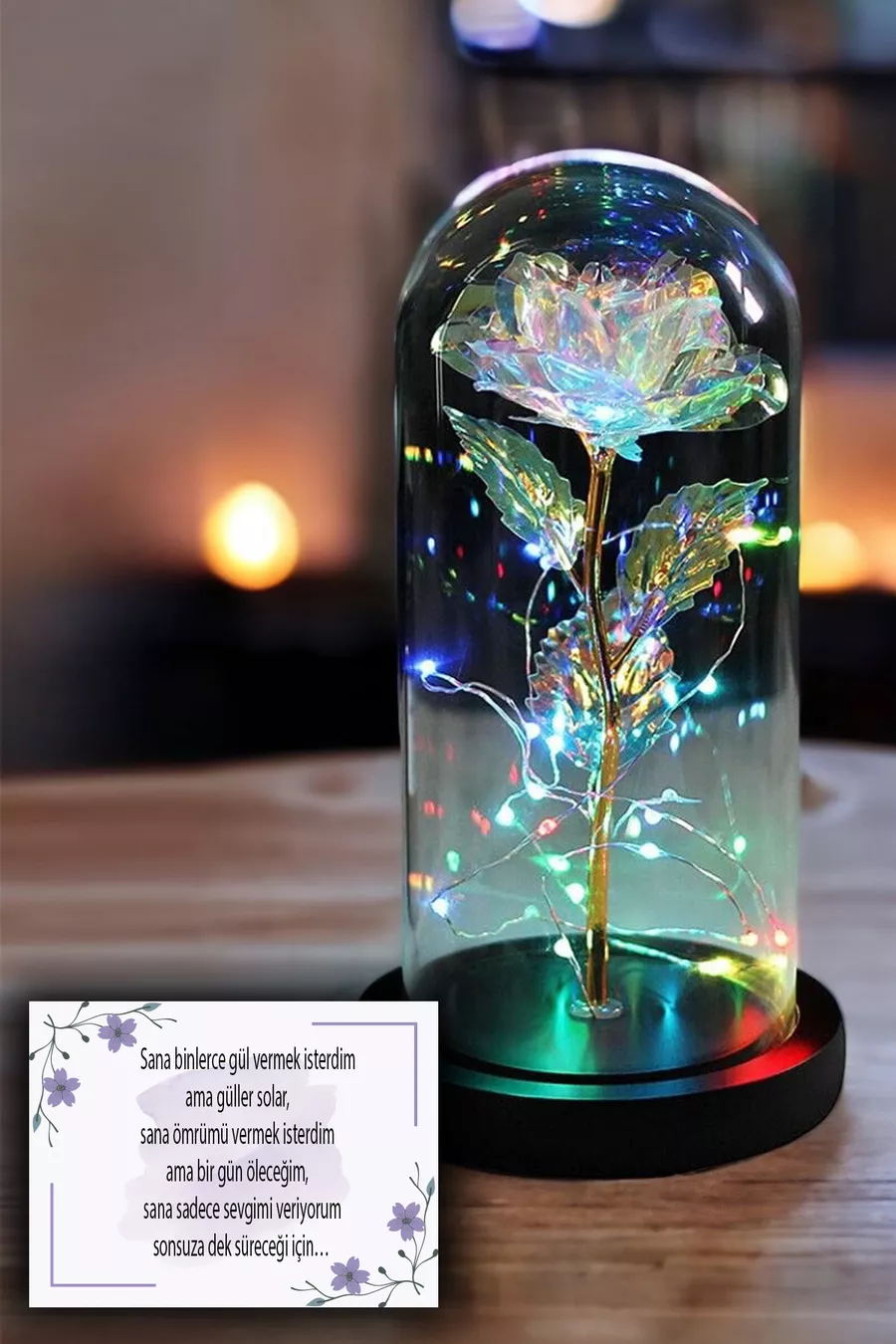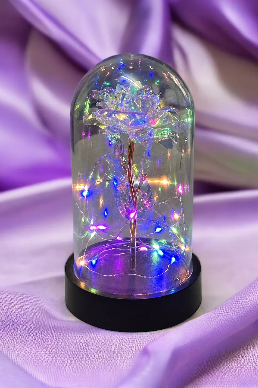 قلادة وردة اللانهاية واللوتس والكاميليا المزينة بأضواء ليد RGB الزاهية في قبة زجاجية ديكورية