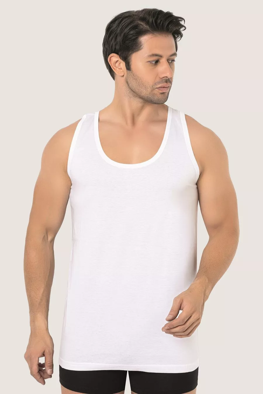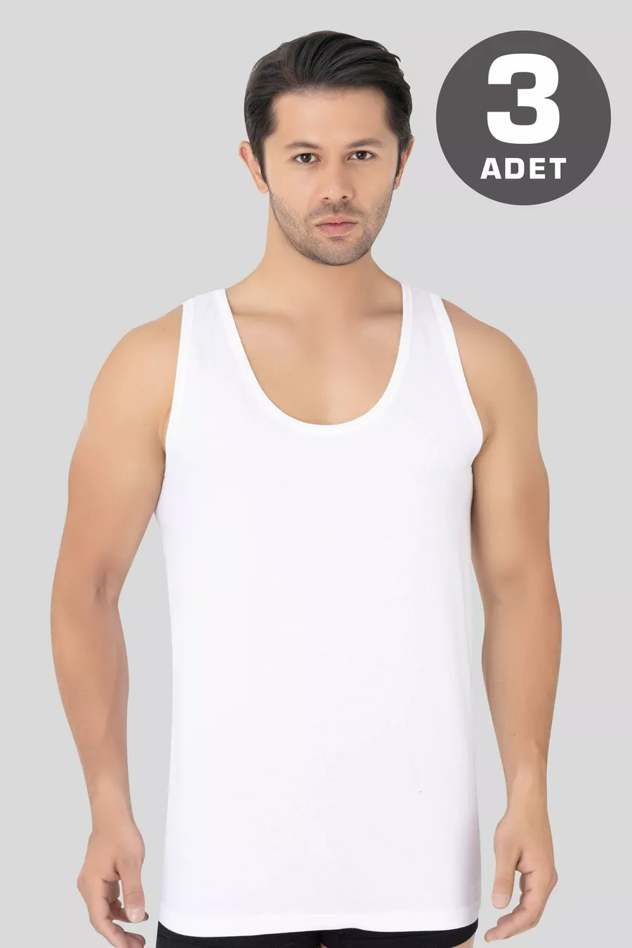 قميص داخلي رجالي أبيض من القطن %، عبوة مكونة من 3 قطع
