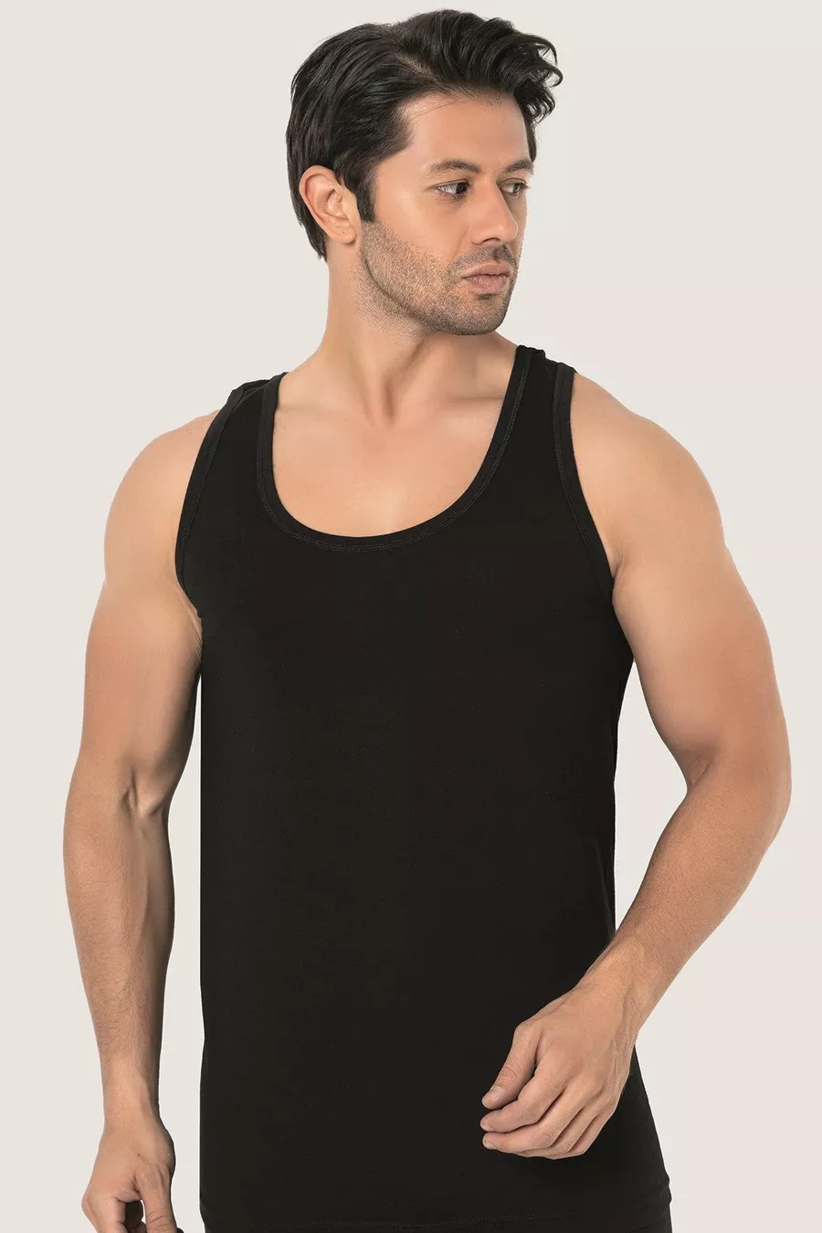 قميص داخلي رجالي أسود من القطن %، عبوة مكونة من 3 قطع
