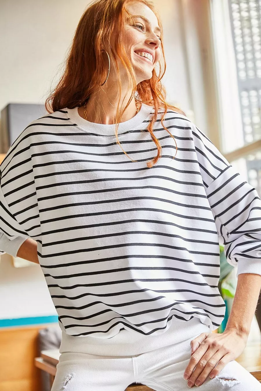 قميص من النوع الثقيل ساتال أبيض أسود مخطط أساسي ناعم