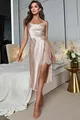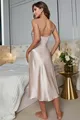 قميص نوم طويل ساتان دانتيل بتصميم خاص وياقة مفتوحة وشق