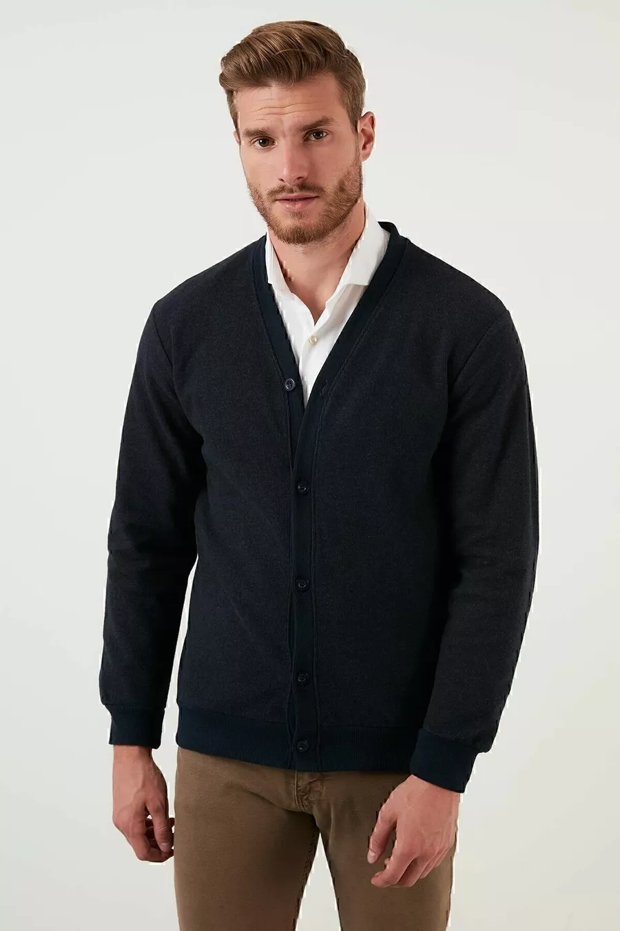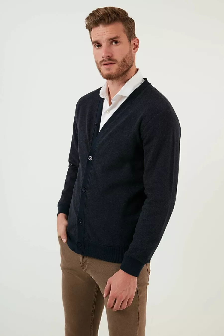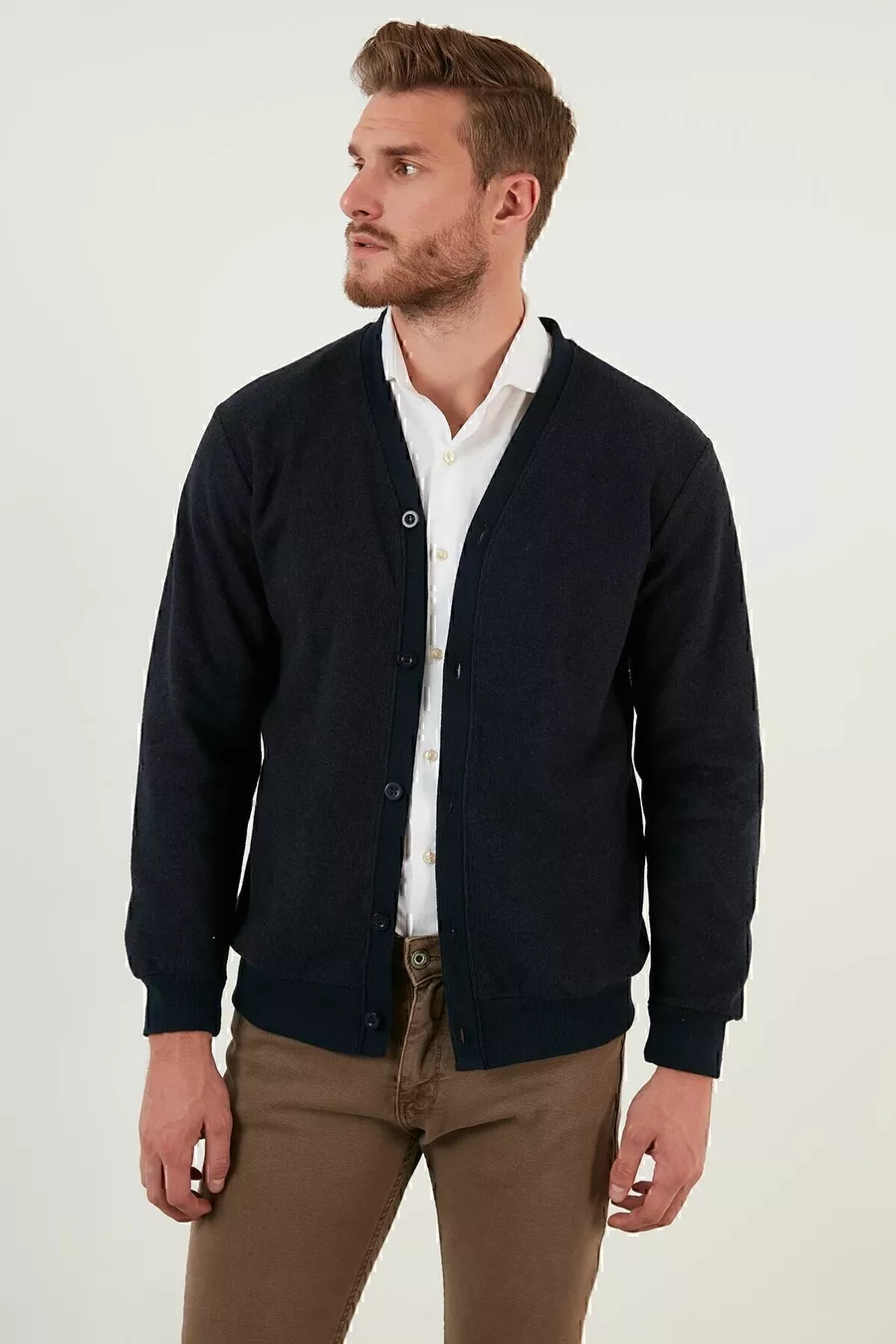 كارديغان رجالي قطني بأزرار وياقة على شكل V، مقاس عادي