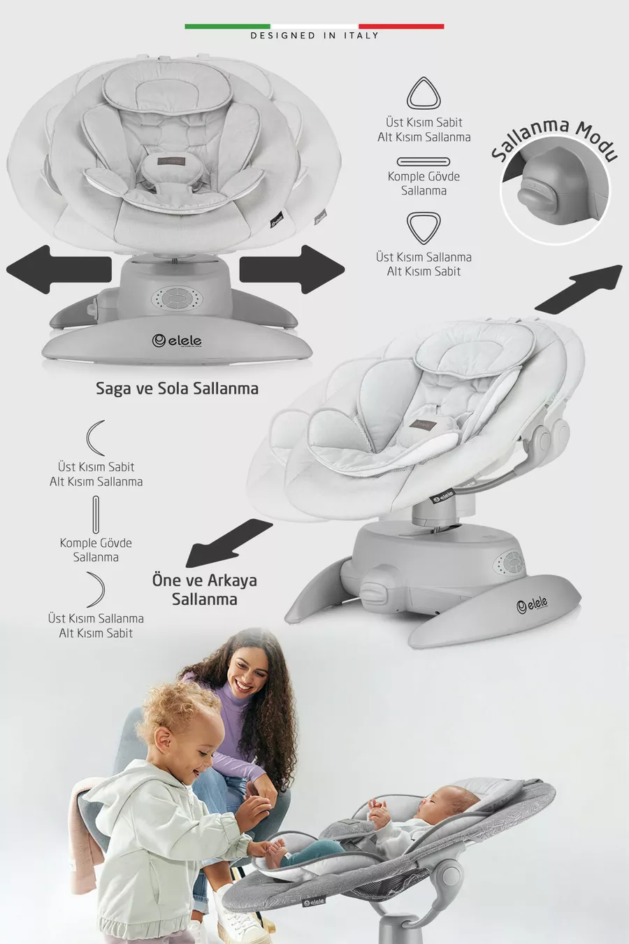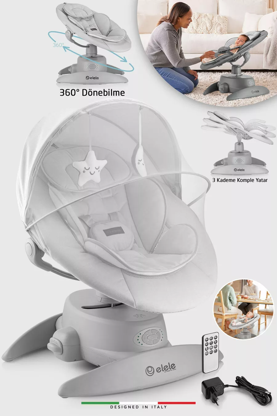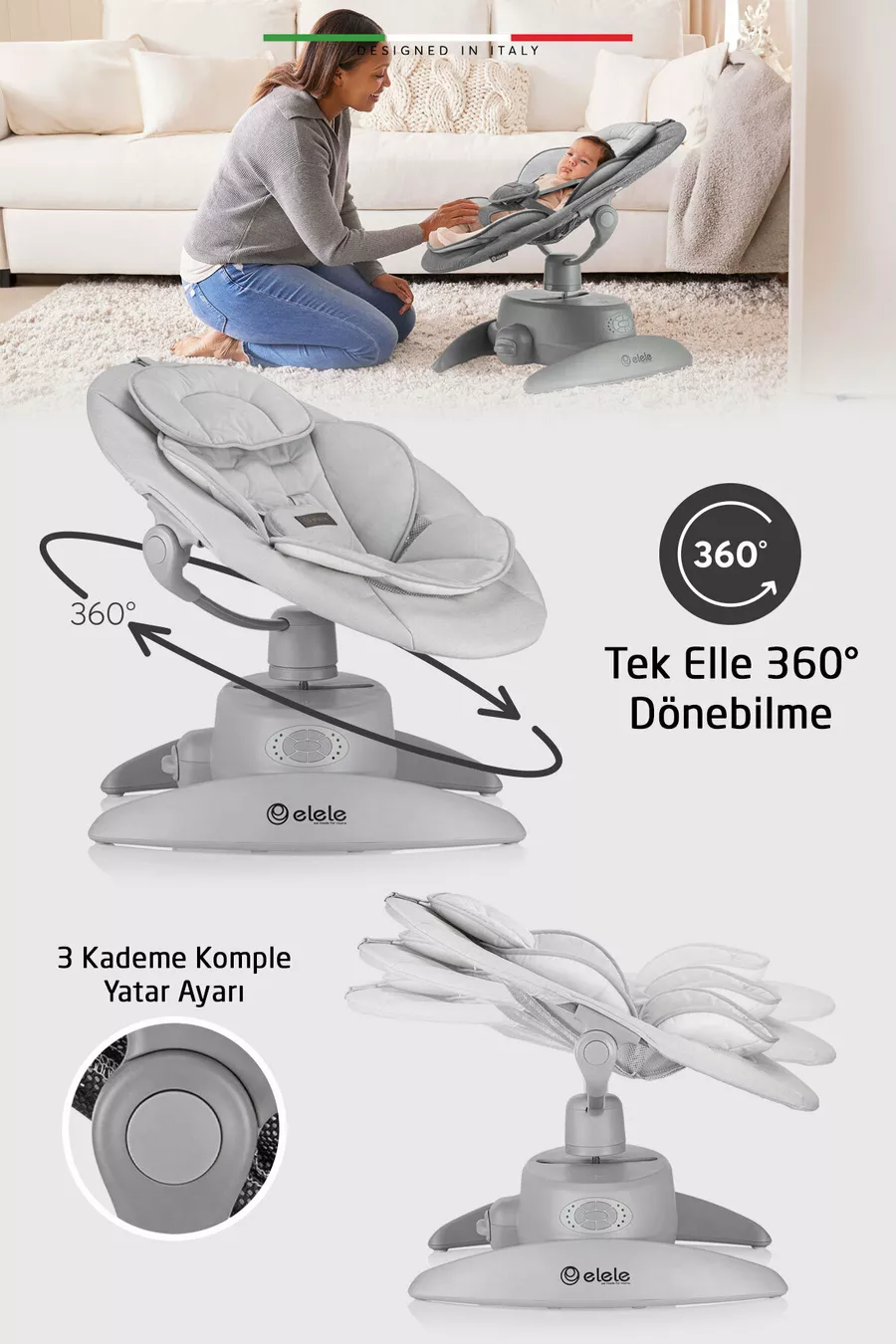 كرسي هزاز كهربائي فاخر من روما للأطفال ° قابل للدوران بدرجات باللون الرمادي