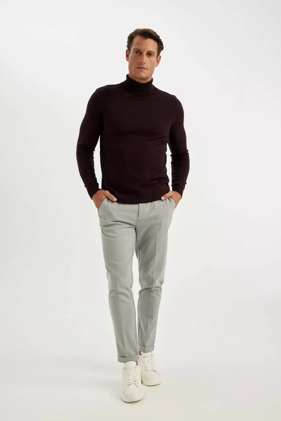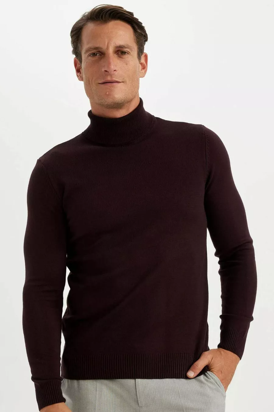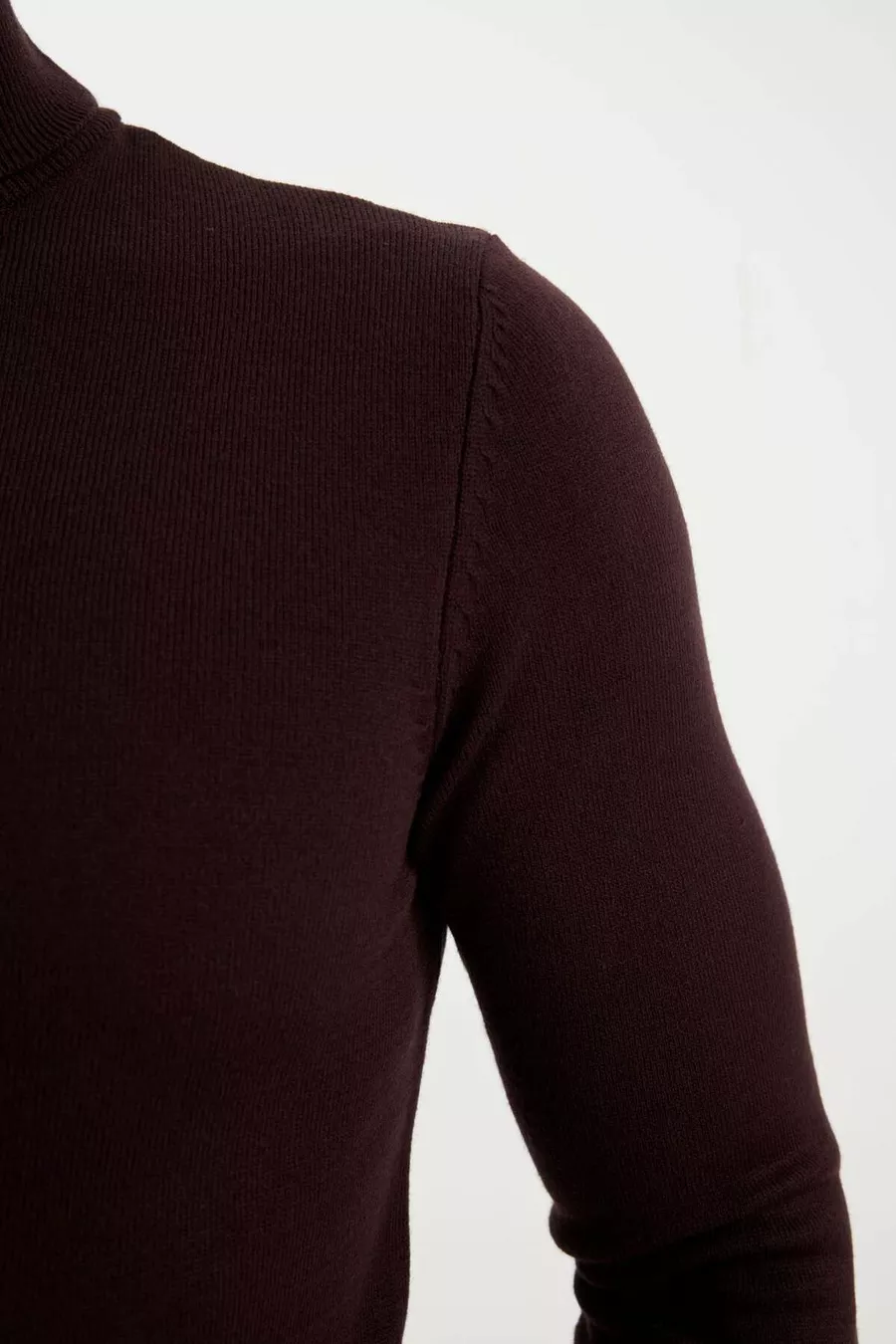 كنزة بفتحة رقبة مرتفعة ضيقة على الجسم، تصميم أساسي بسادة ناعمة WN