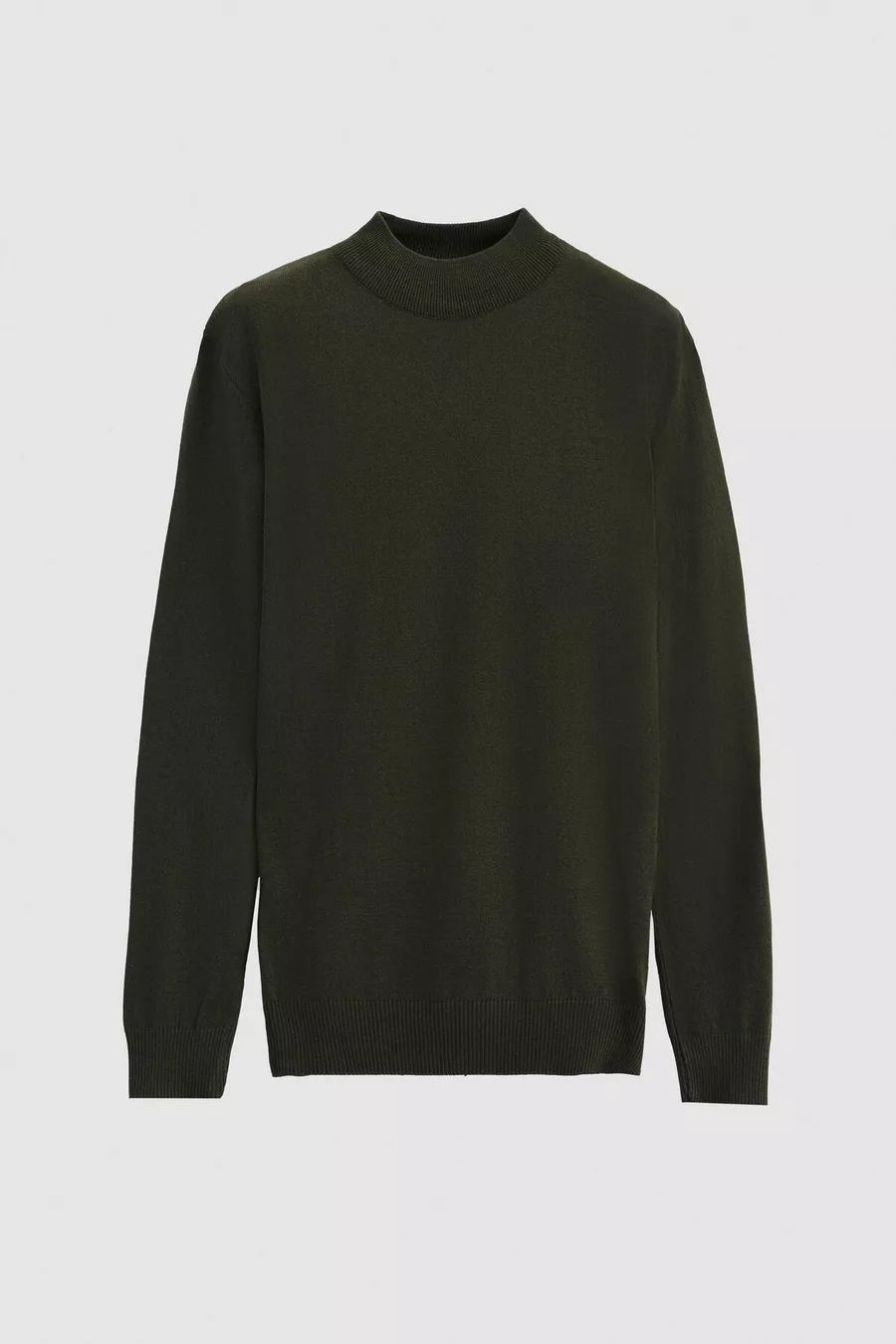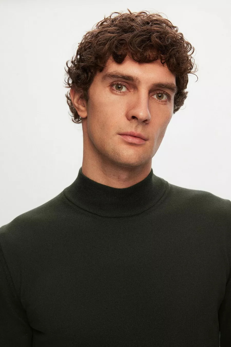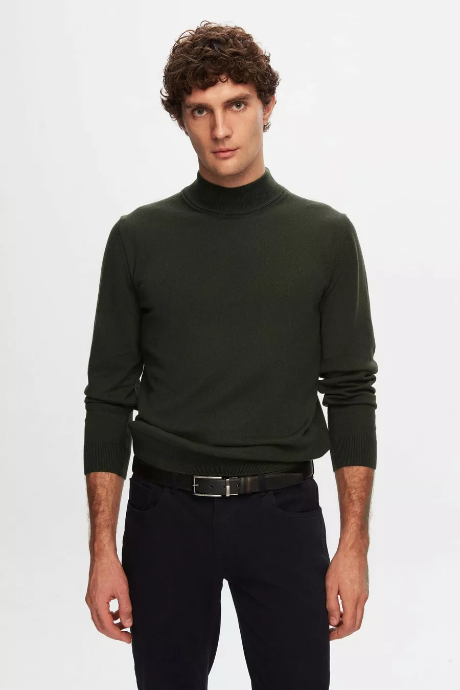 كنزة تريكو نص بطانية بياقة نصف سلحفاة Ds Damat بقصة عادية خليط قطن باللون الكاكي
