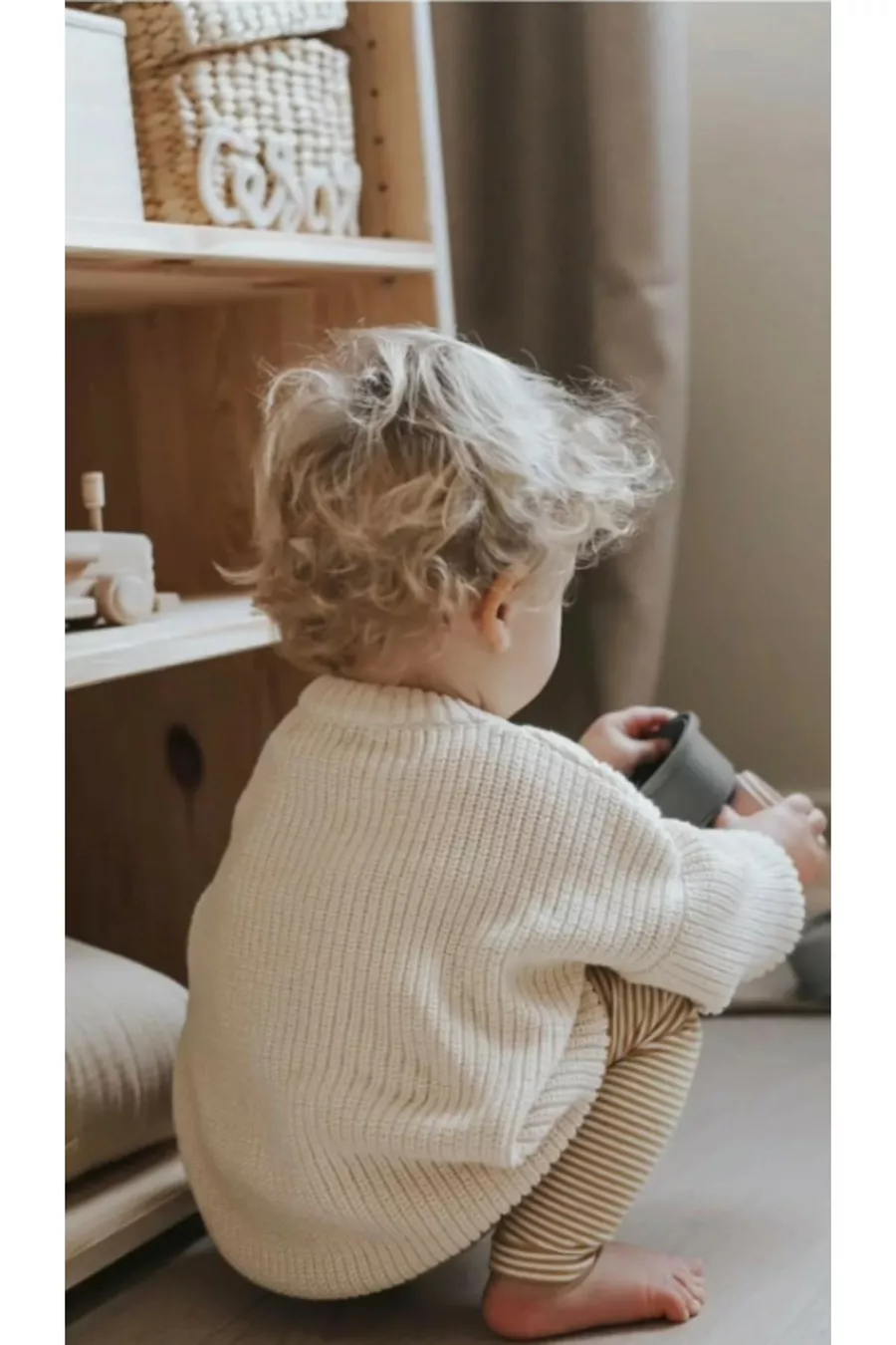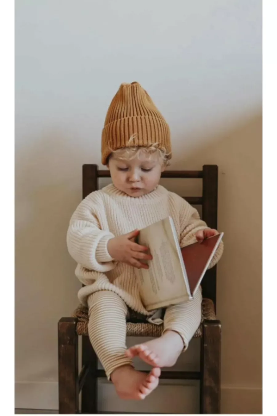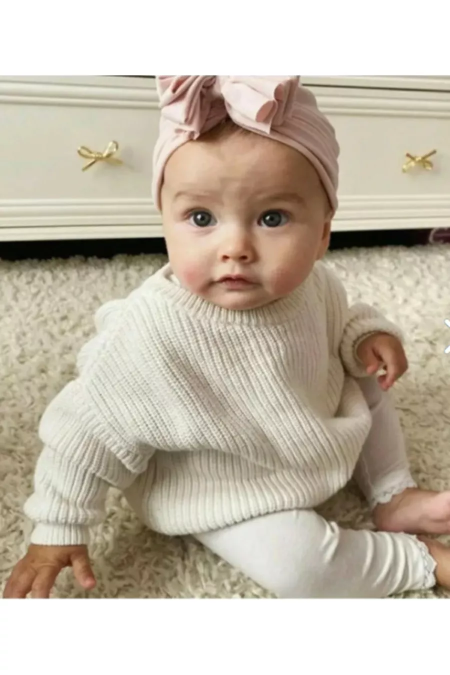كنزة تريكو بيفر أطفال للجنسين بياقة دائرية مرنة للغاية بلون عاجي