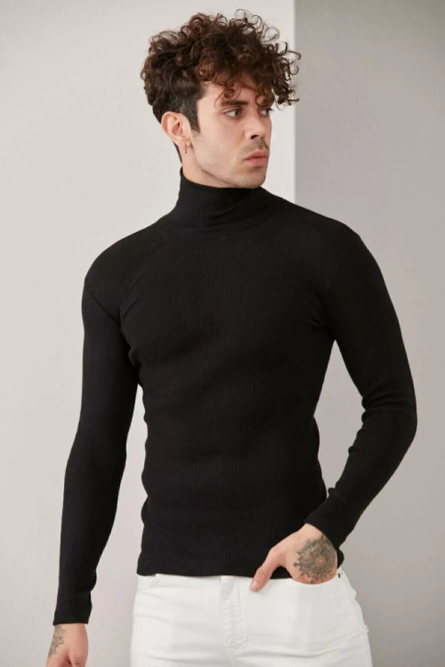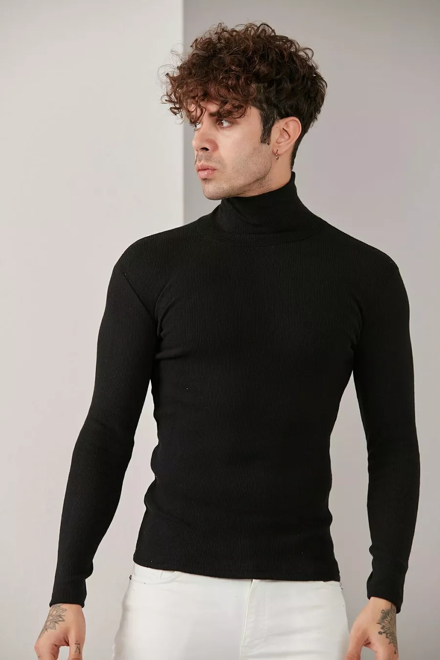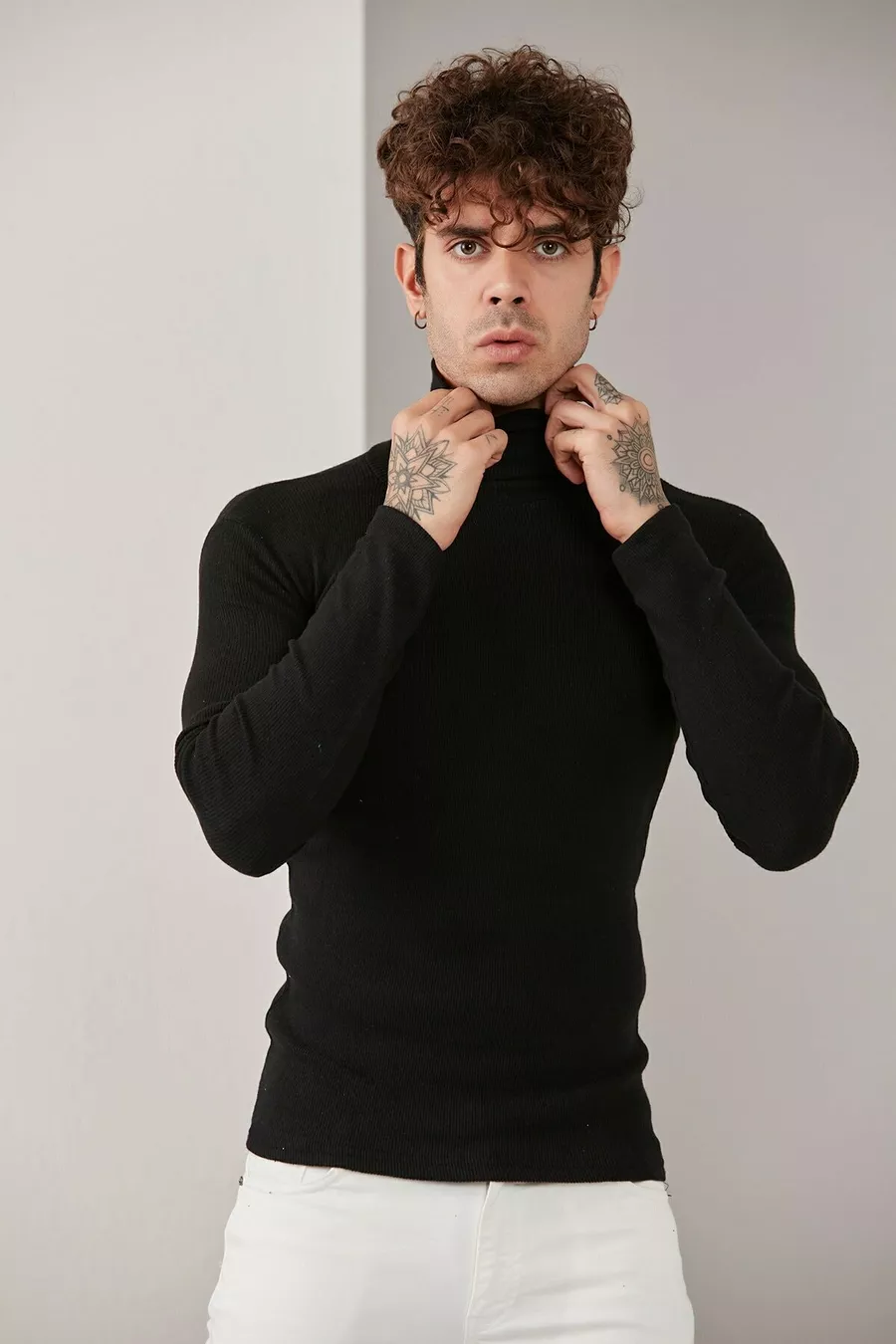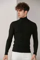 كنزة رجالية سوداء بياقة عالية من الليكرا