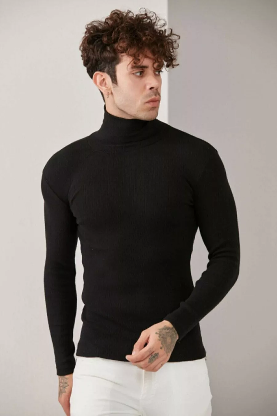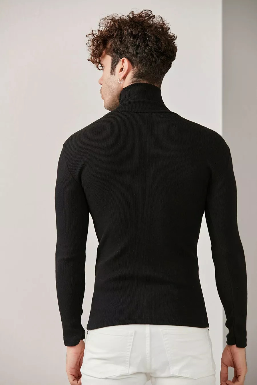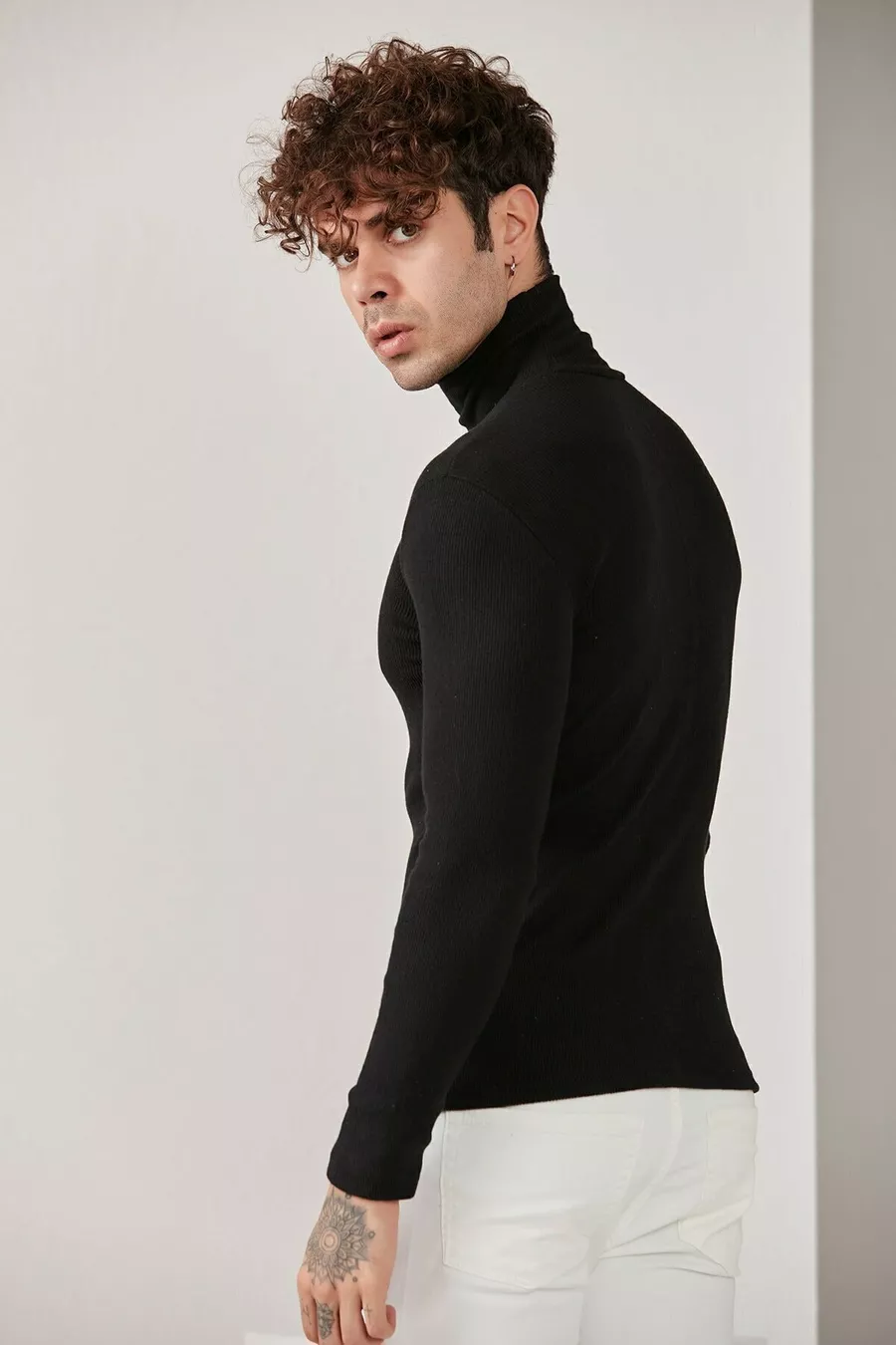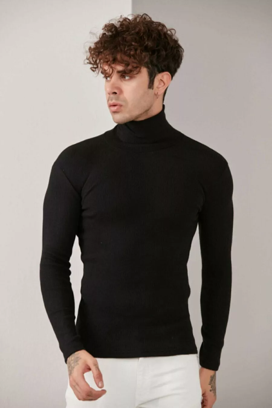 كنزة رجالية سوداء بياقة عالية من الليكرا