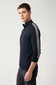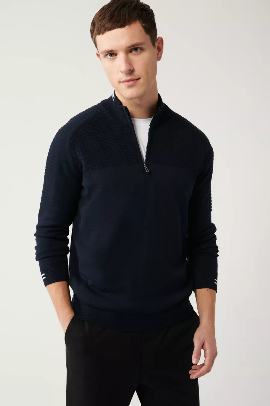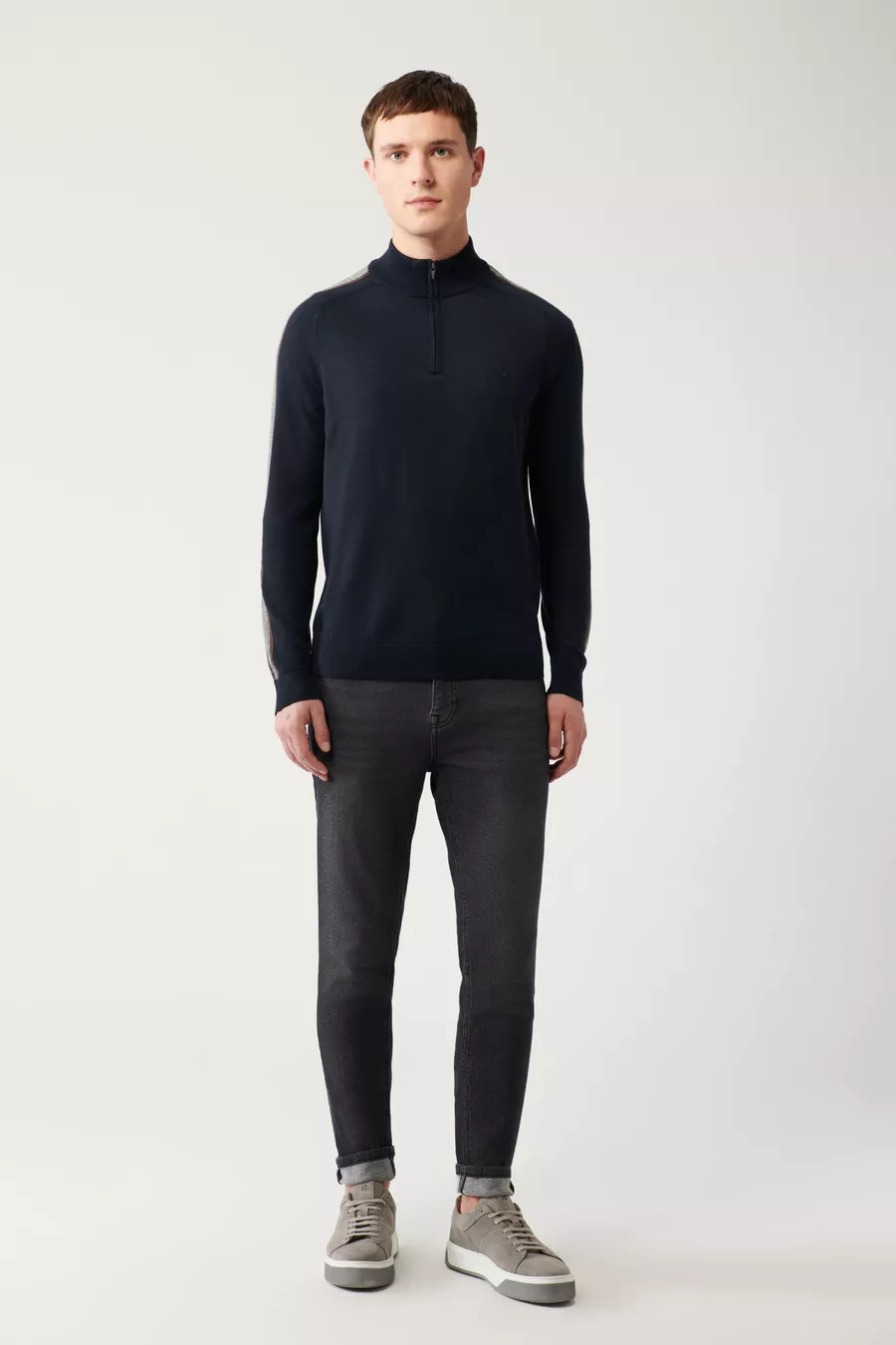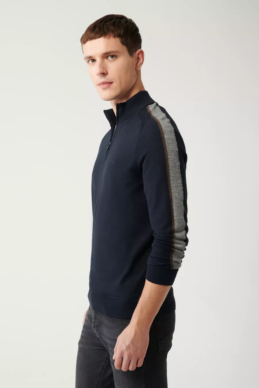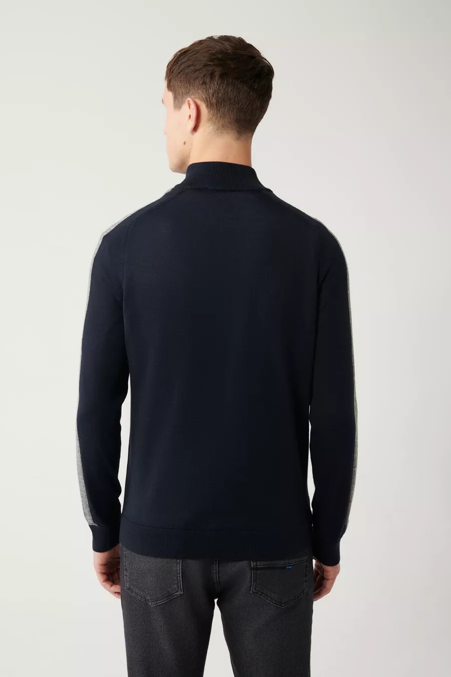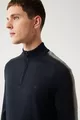 كنزة رجالية صوفية مزيج الصوف برقبة عالية وسحّاب باللون الكحلي