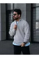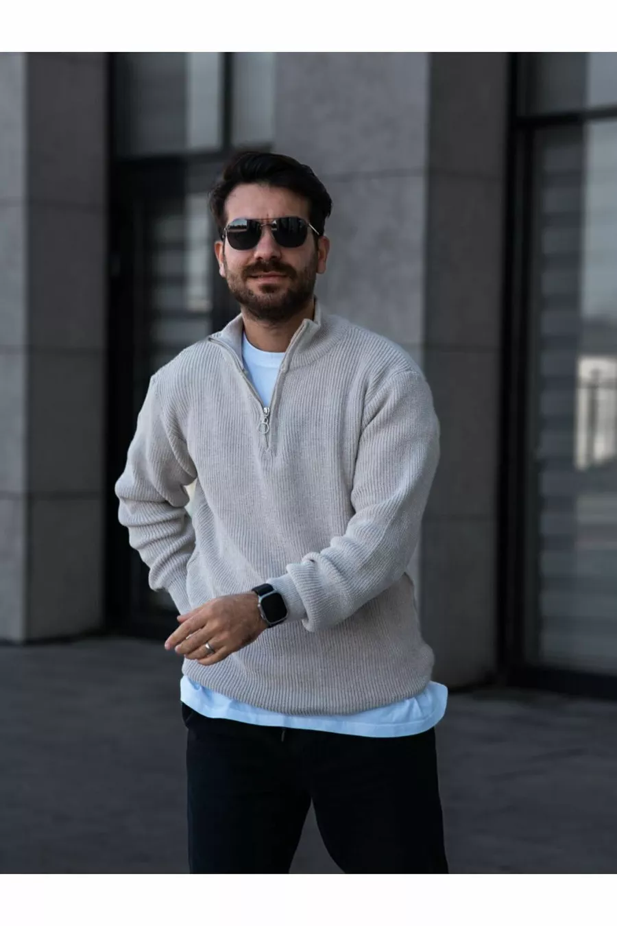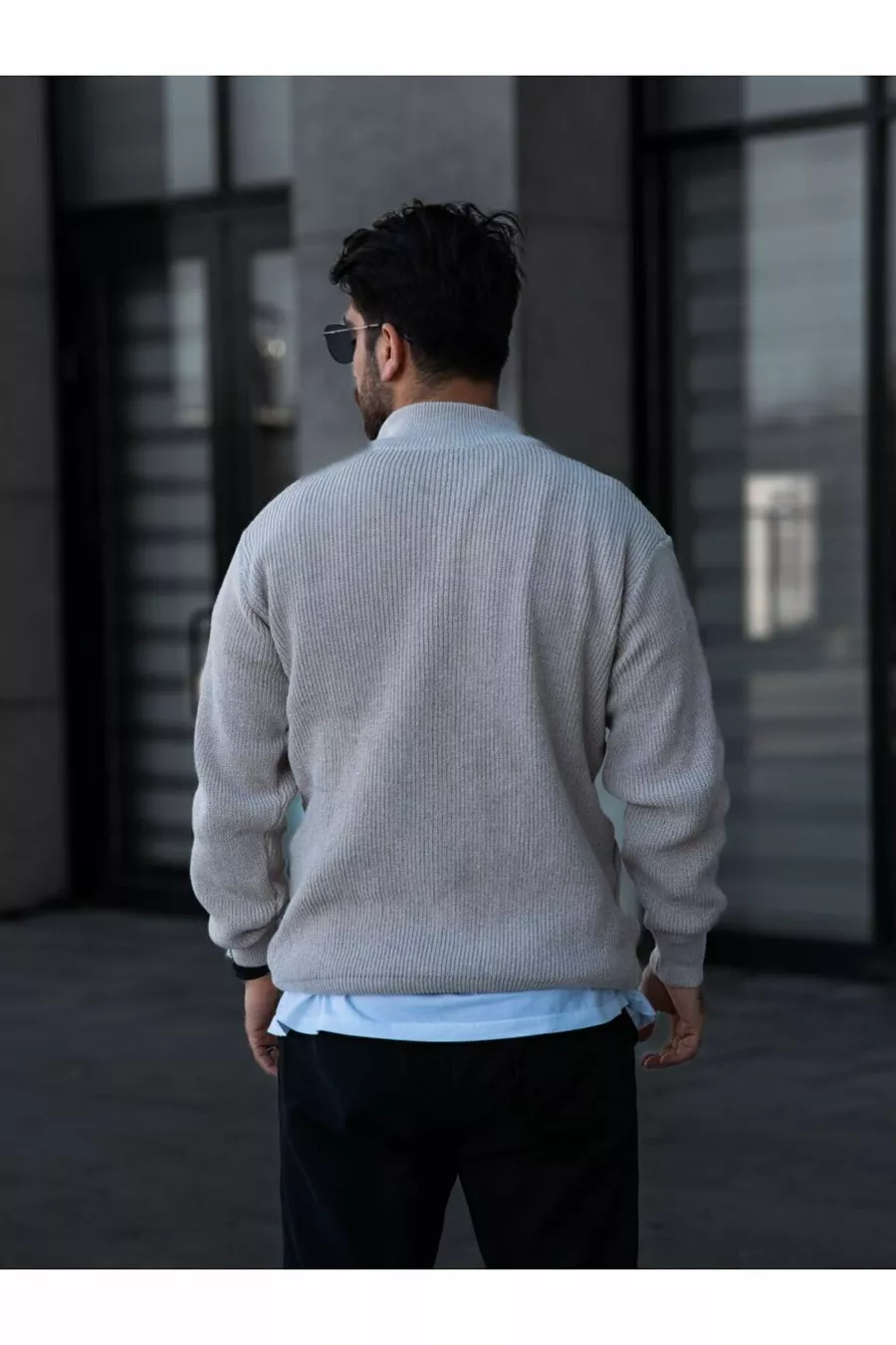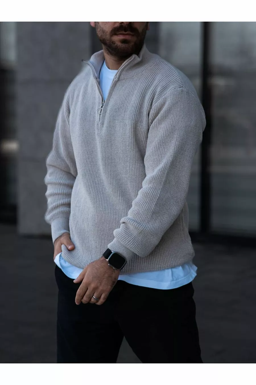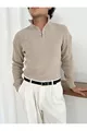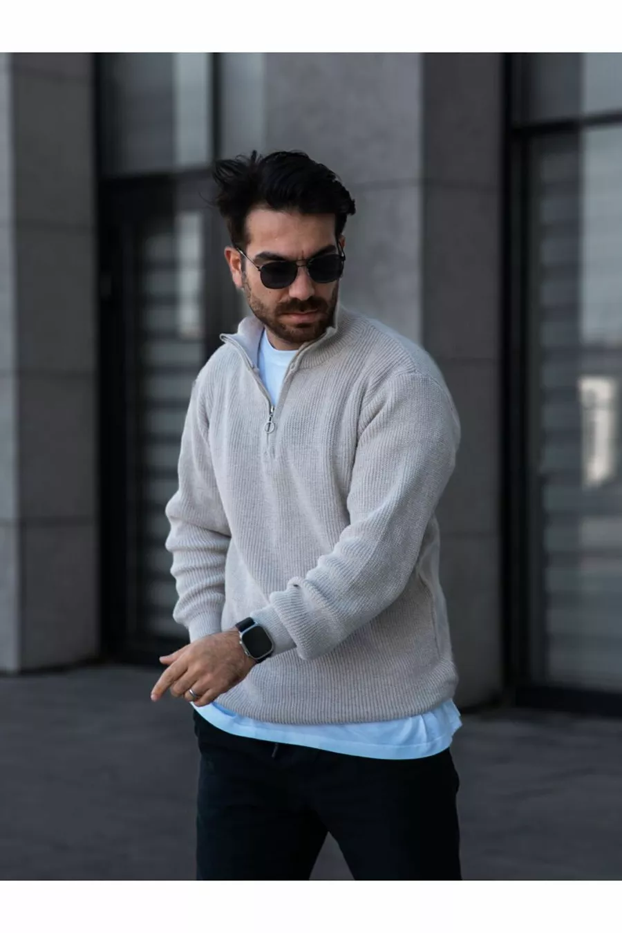 كنزة رجالية من صوف السلانك بياقة نصف سحاب باللون الحجر