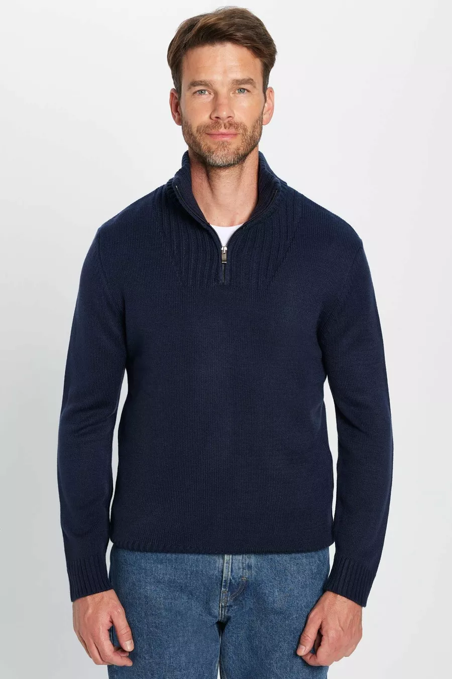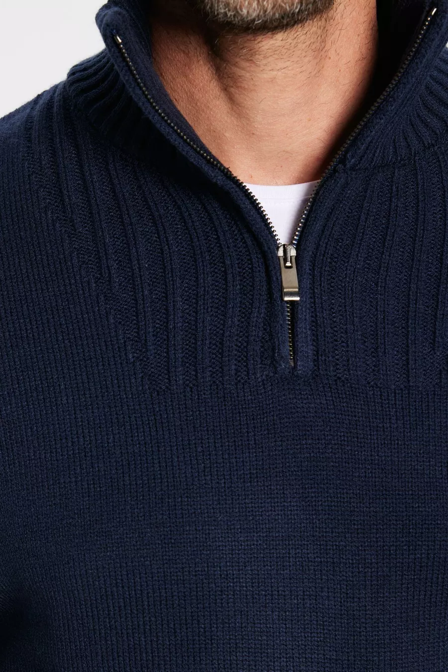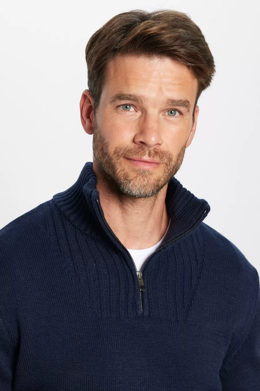 كنزة رجالي ضيقة التصميم بقصة رقيقة برقبة عالية وسحاب باللون الكحلي