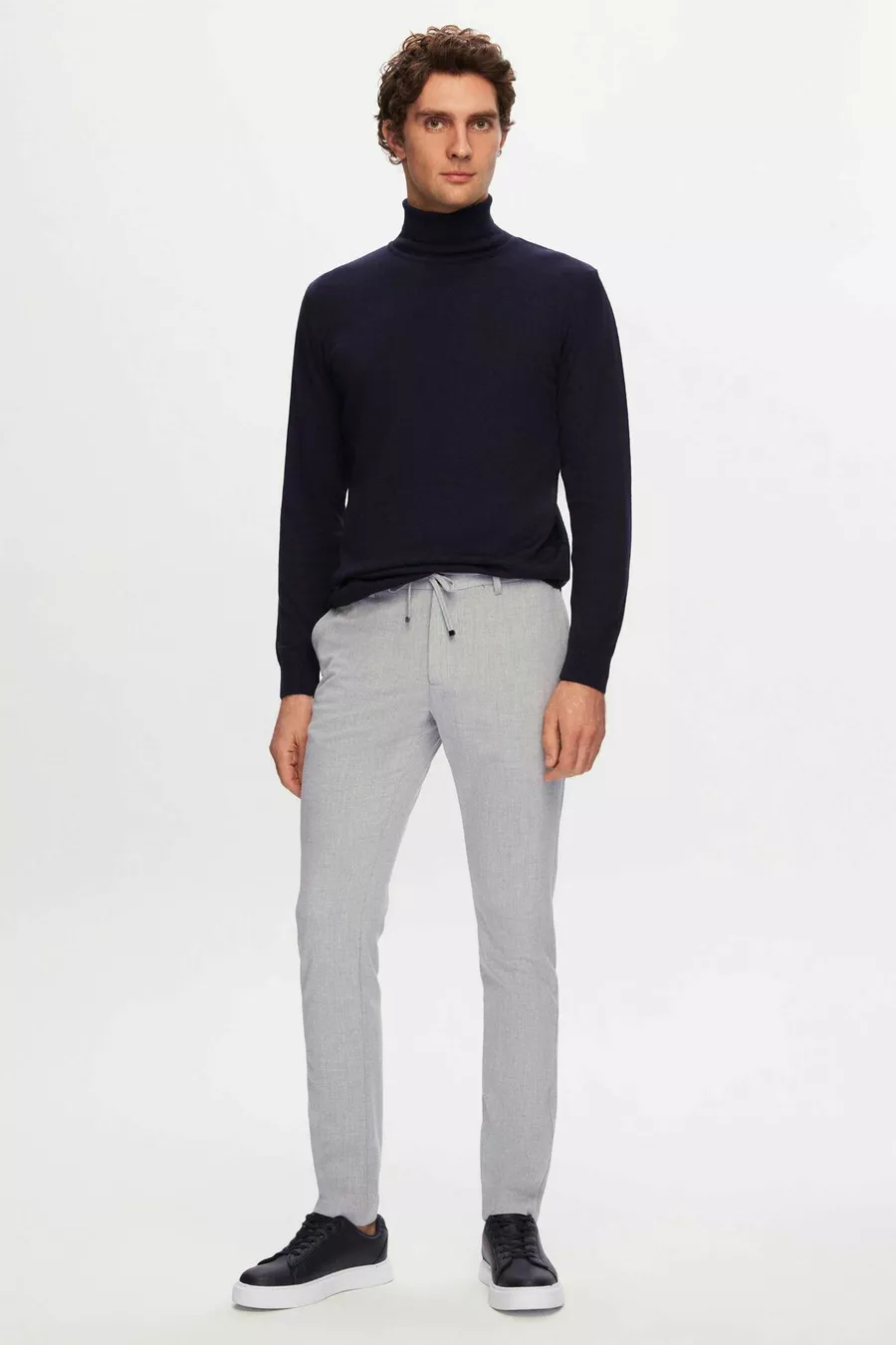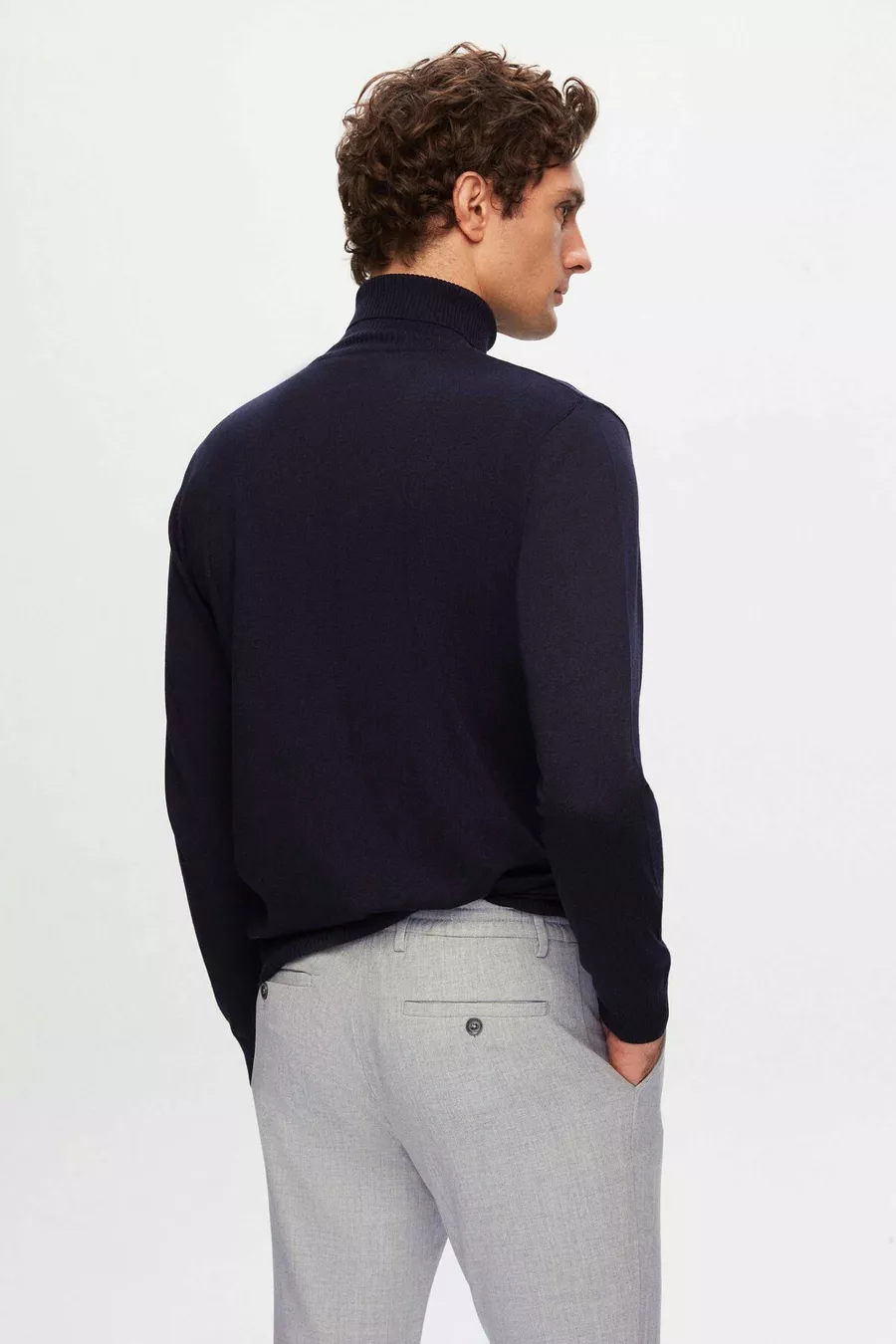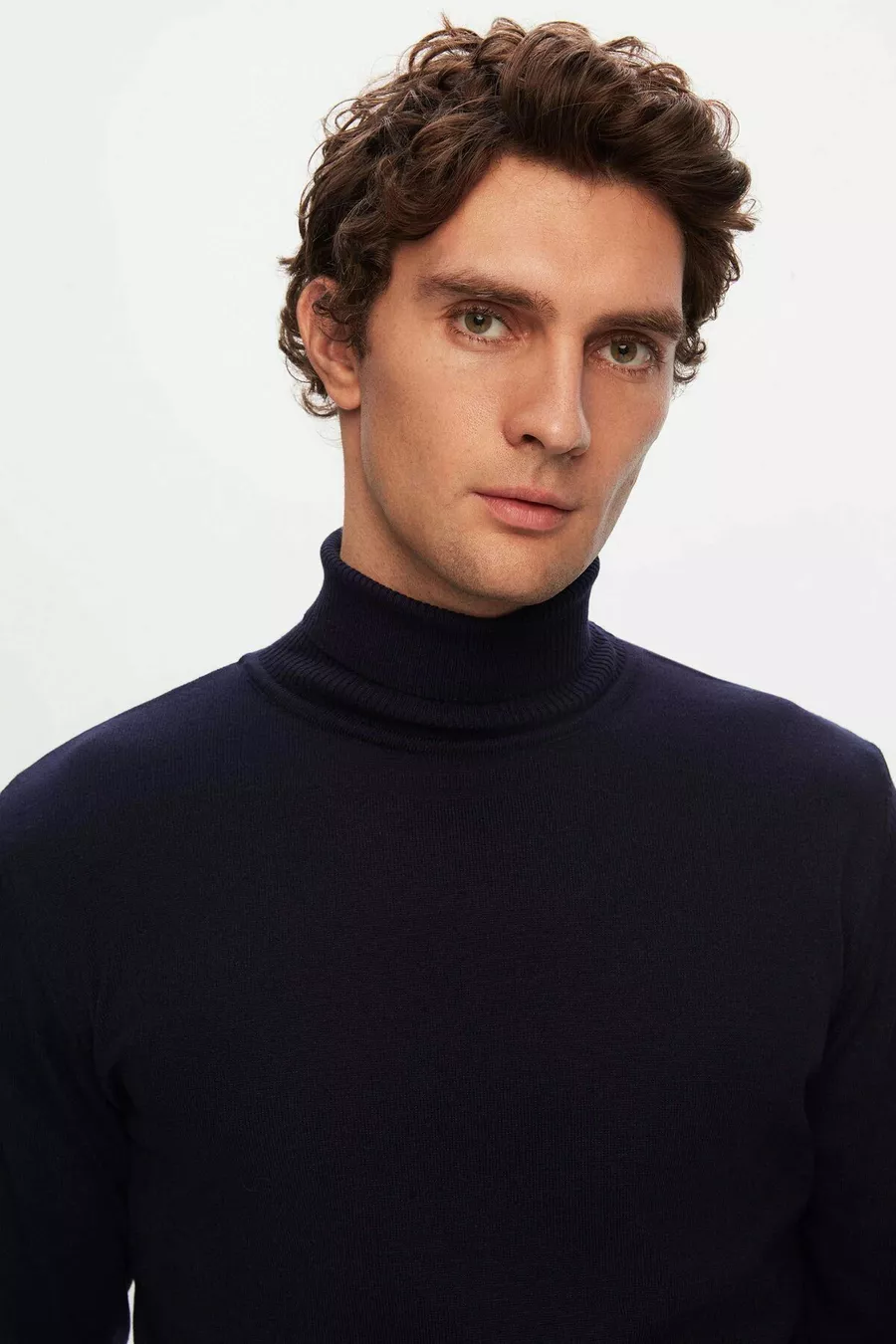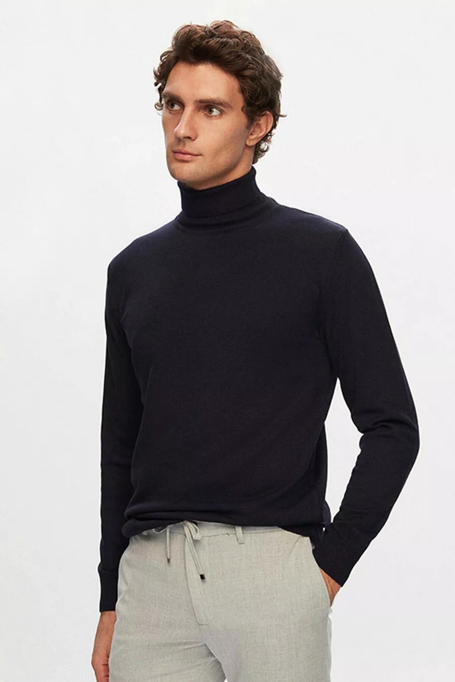 كنزة صوفية بياقة مرتفعة من Ds Damat، بقصة عادية، باللون الأزرق الداكن ومزيج قطن
