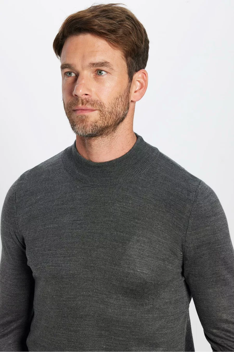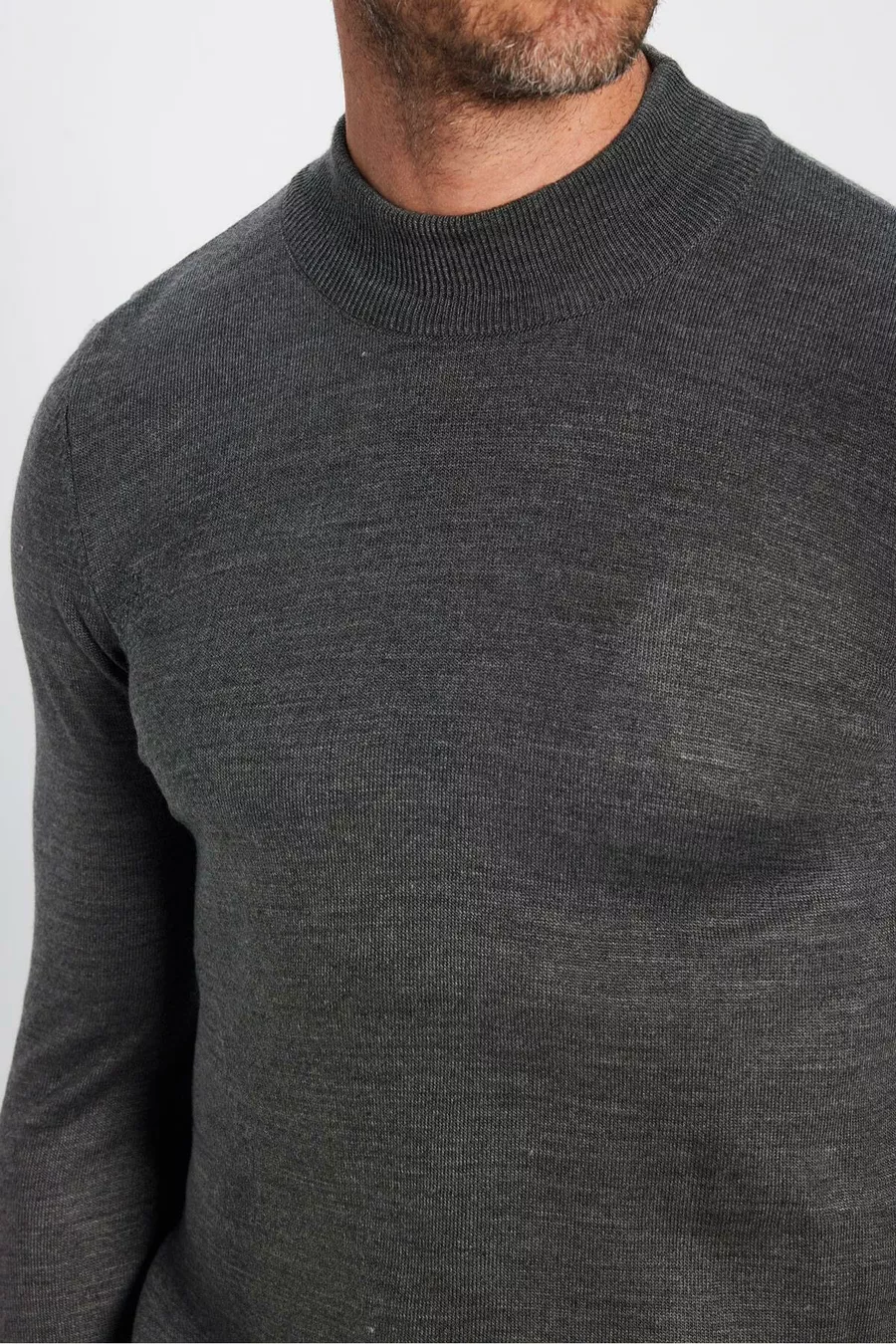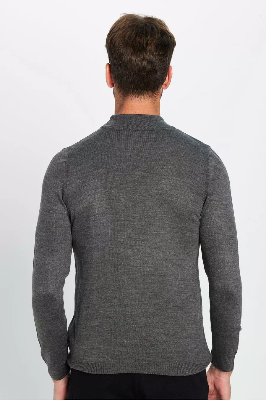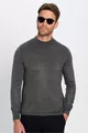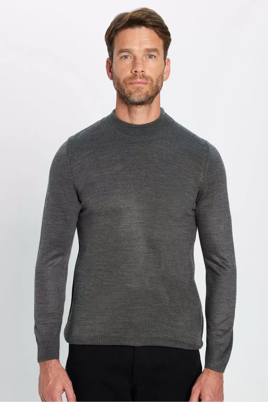 كنزة صوفية رجالية ضيقة القَصة، ناعمة الملمس، غير قابلة للتقشر، باللون الرمادي وياقة نصف عالية على شكل سلحفاة