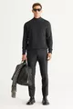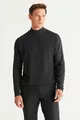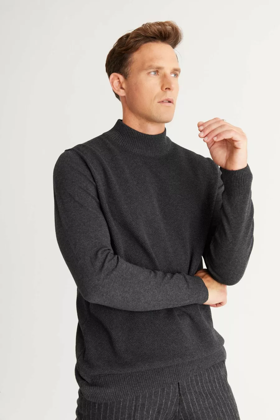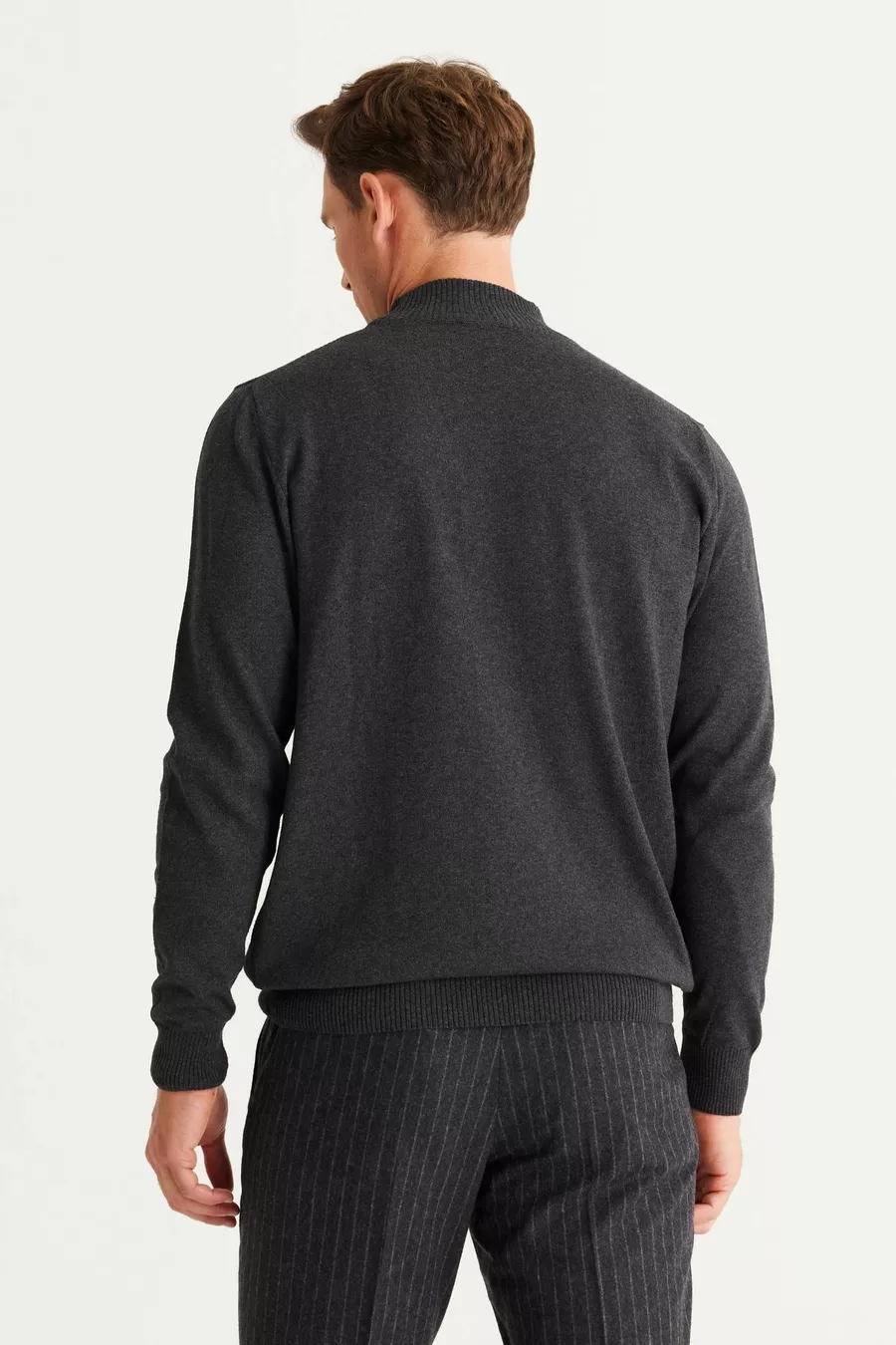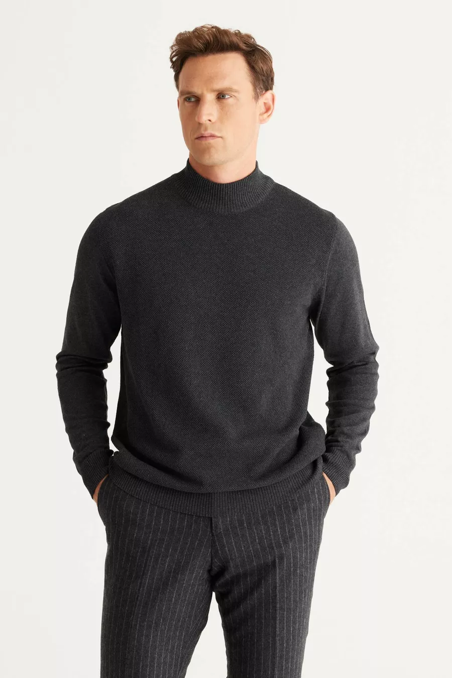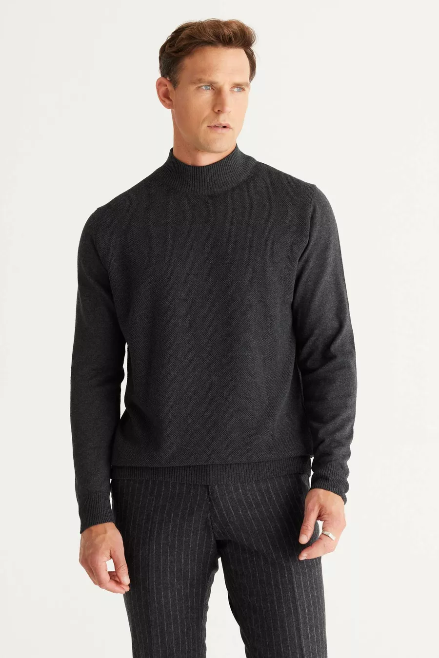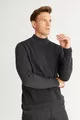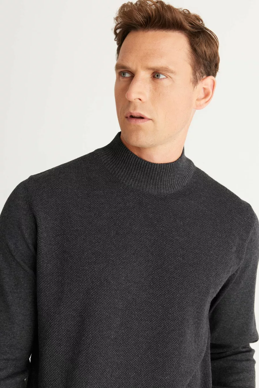 كنزة صوف قطنية للرجال برقبة نصف عالية، قياس عادي، قصة عادية، باللون الرمادي الداكن