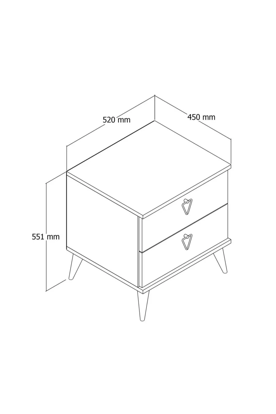 المادة: سونتالام اللون: أبيض مدة الضمان: سنتان عدد الأدراج: 2 الارتفاع: 55 سم العرض: 52 سم العمق: 45 سم الأسلوب: إسكندنافي الطابع / الأسلوب: إسكندنافي المنشأ: تركيا الخاصية: مع أدراج