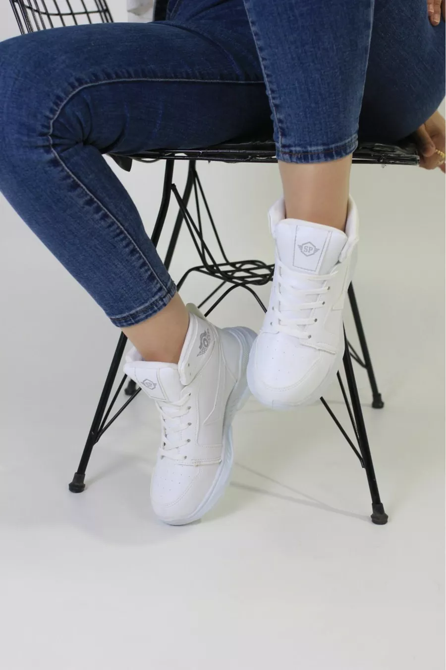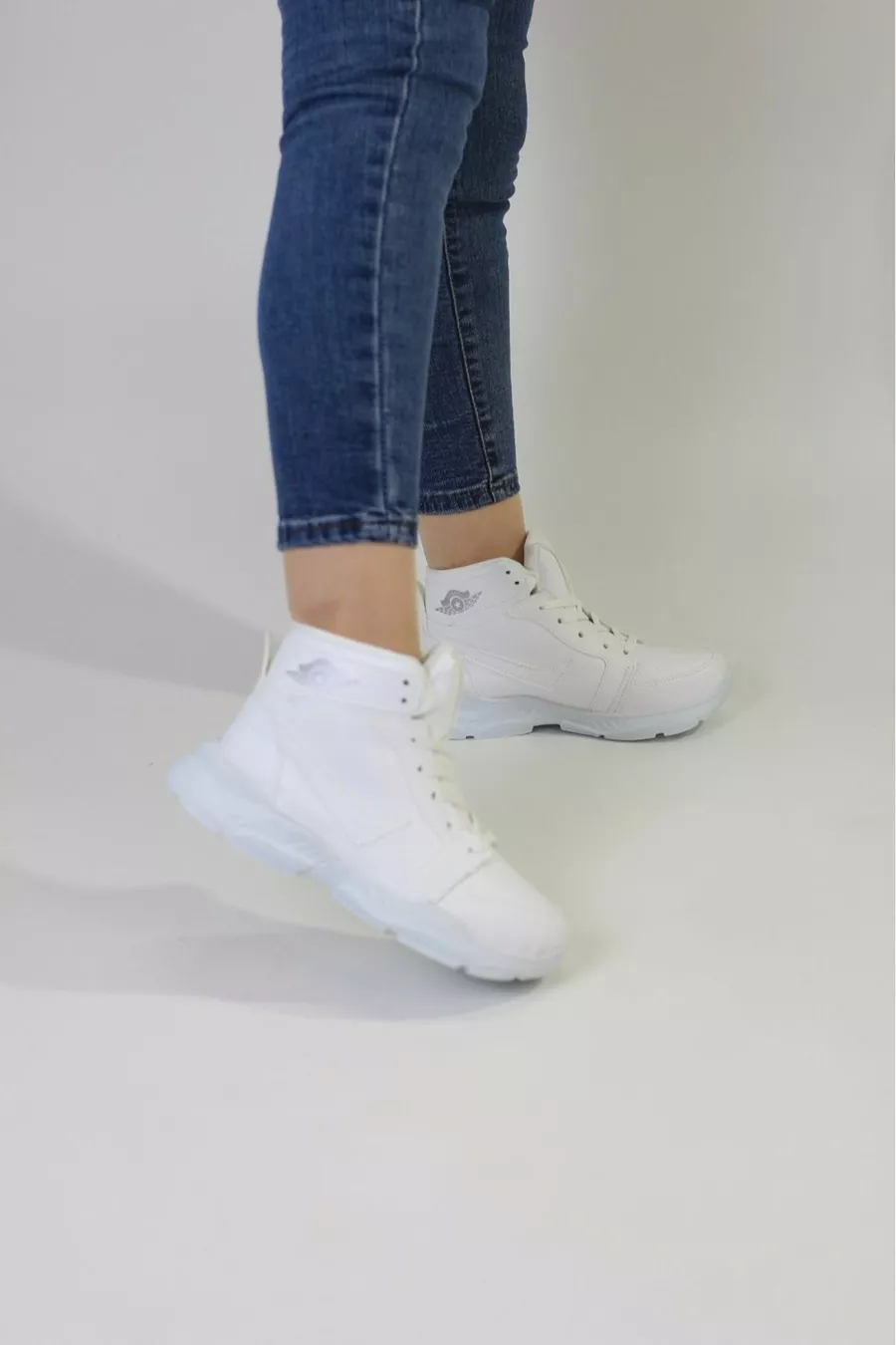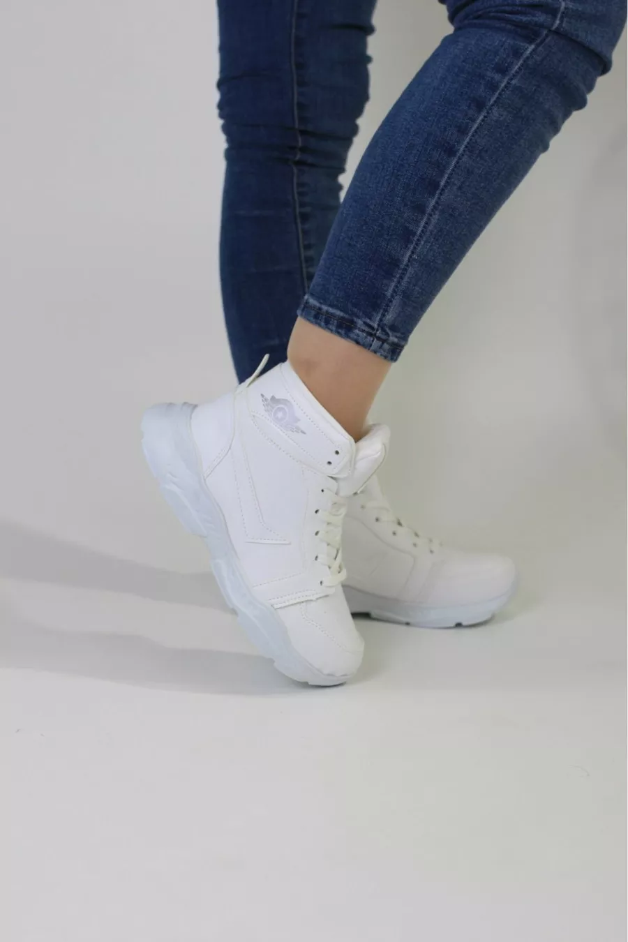 للجنسين تشغيل الكاحل عارضة أحذية رياضية بيضاء
