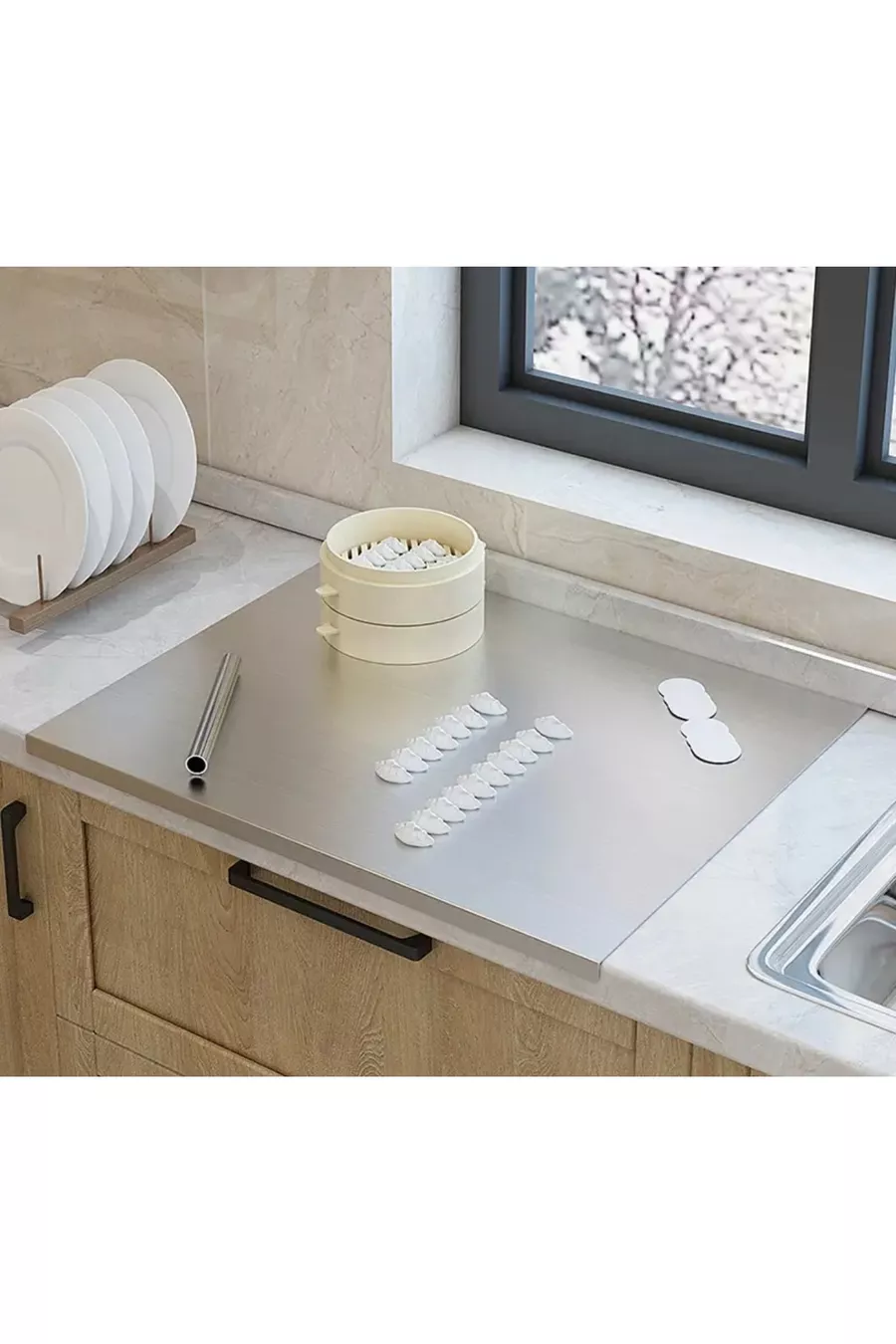 لوح تقطيع معدني مقاوم للصدأ بسمك سم واحد، حماية للطاولة، متعدد الاستخدامات للمطبخ