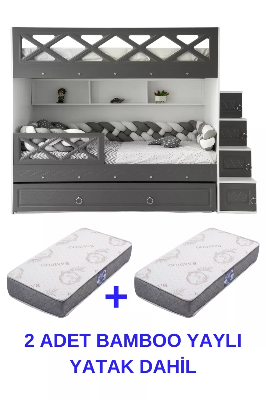 اللون: متعدد الألوان المادة: MDF و سنتالام الحجم: مزدوج الأبعاد: 90 × 190 مدة الضمان: سنتان الأسلوب: حديث الموضوع / الأسلوب: حديث سرير بطابقين: موجود المنشأ: تركيا الخاصية: مع أدراج