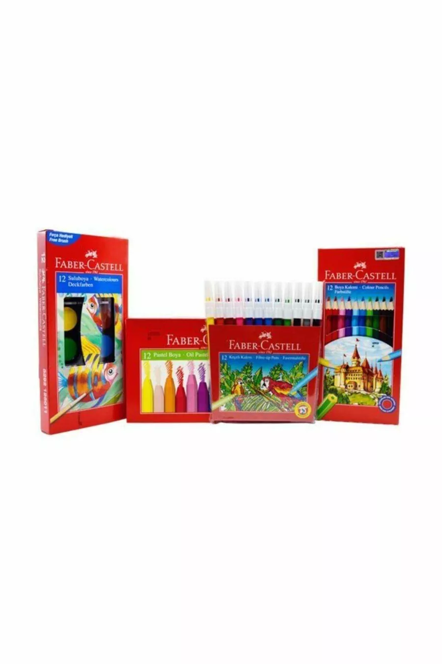 مجموعة المدرسة 3 - ألوان خشبية، ألوان مائية، أقلام فلوماستر، ألوان شمعية ( لونًا)