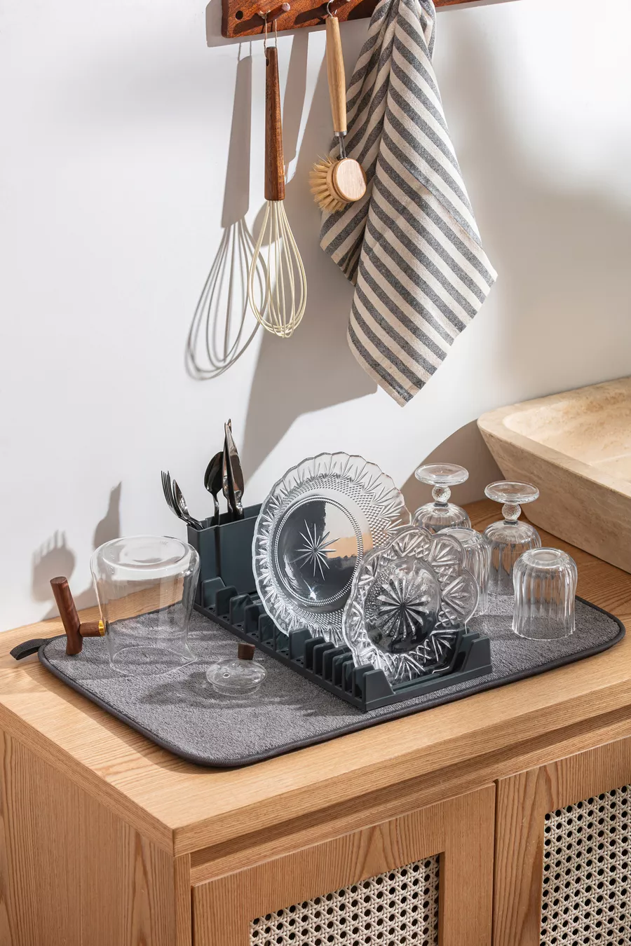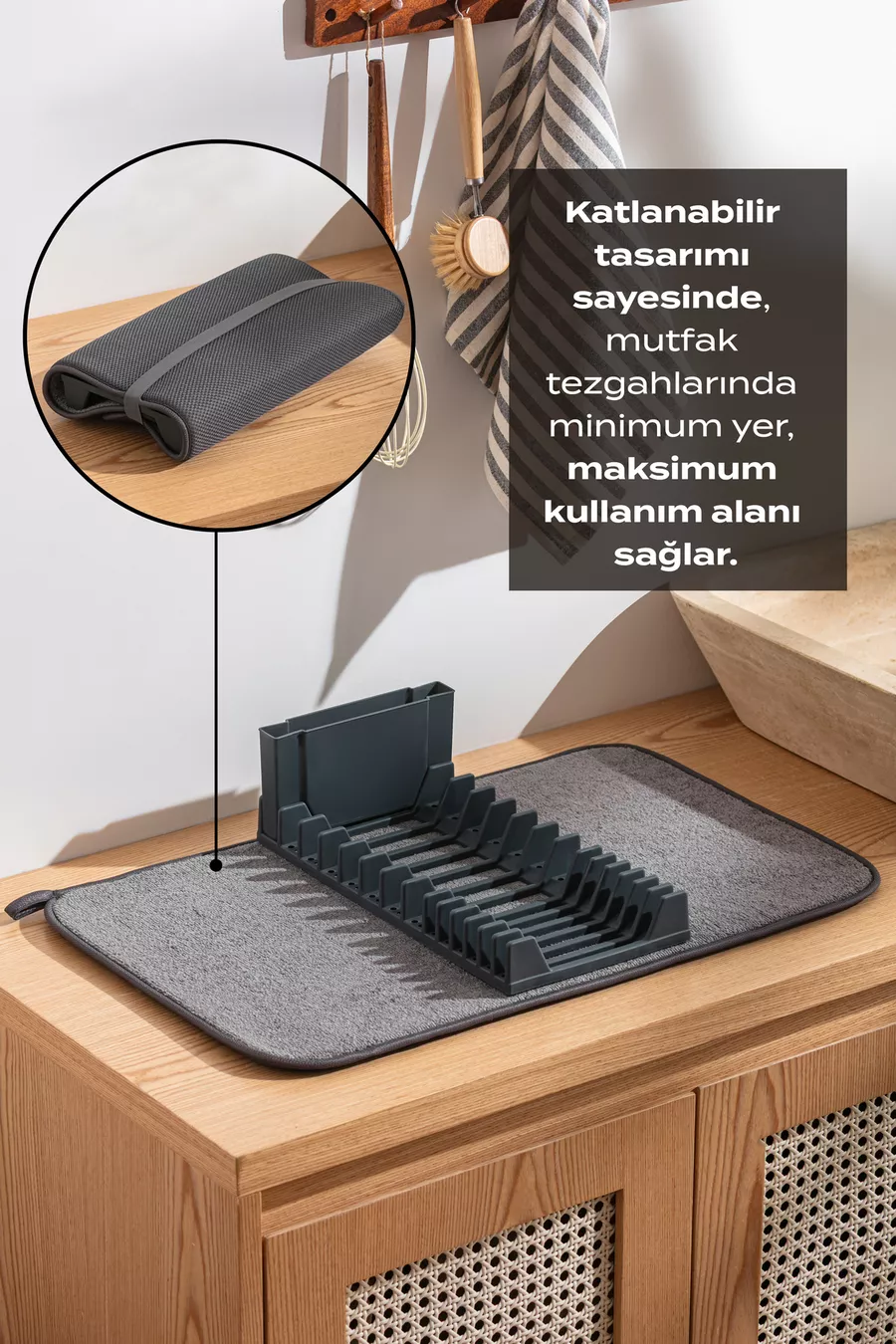 مجموعة حوض صحون كبيرة الحجم سم، 3 قطع، مع حصيرة ميكروفايبر قابلة للطي لوضعها على الطاولة