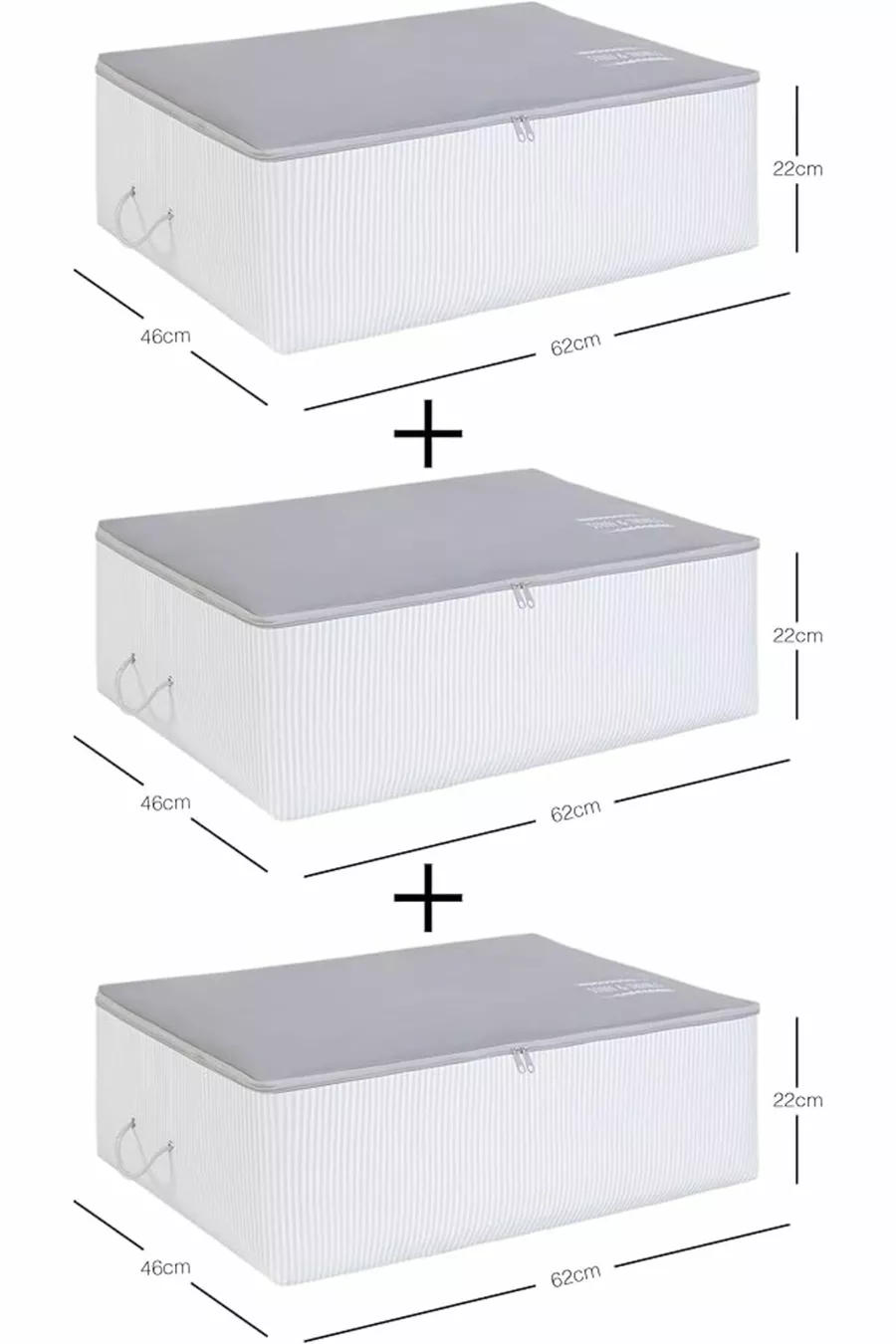 مجموعة صناديق تخزين تحت السرير 3 قطع كبيرة اللون الرمادي من هوم تيكستايل