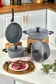 اللون: رمادي الحجم/الأبعاد: 22 سم السعة: 2.3 لتر الميزة: قاعدة غير لاصقة المادة الخارجية: جرانيت المادة الداخلية: جرانيت عدد القطع: 15 المادة: جرانيت