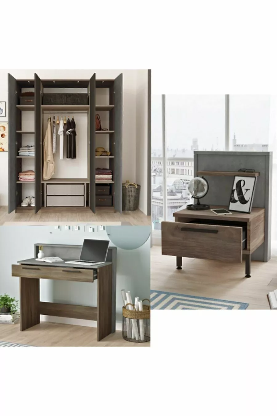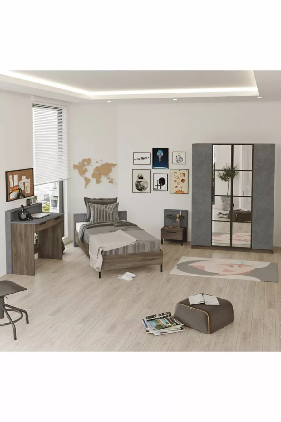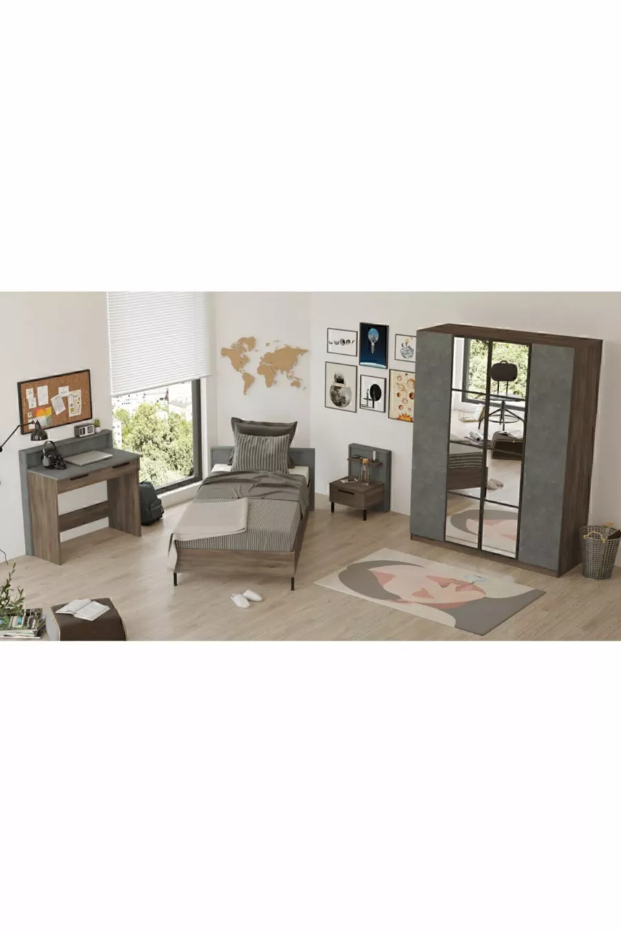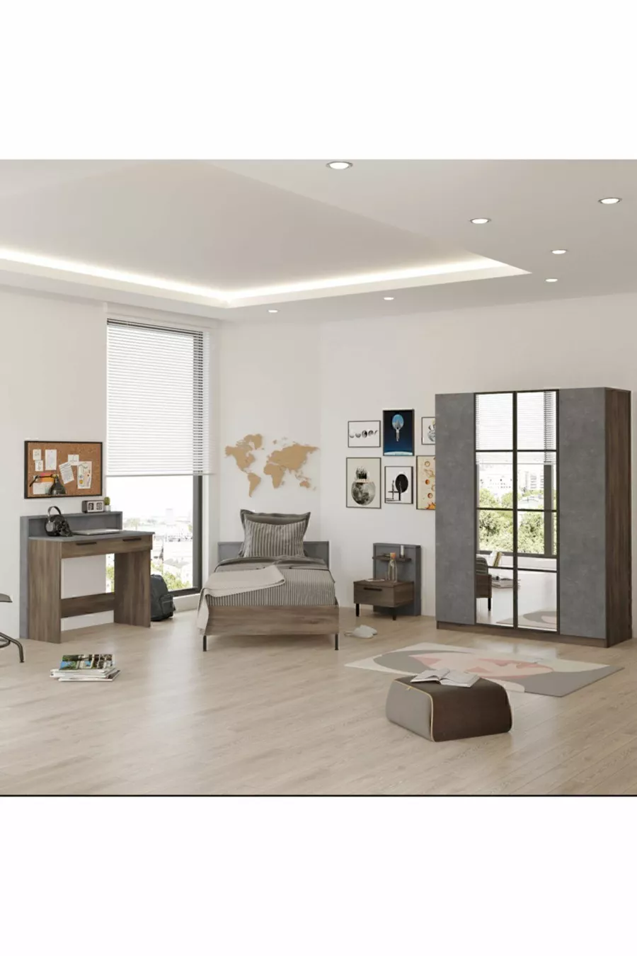 مجموعة غرفة نوم شبابية صغيرة من 4 قطع بالخرسانة والبيج -CG