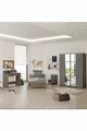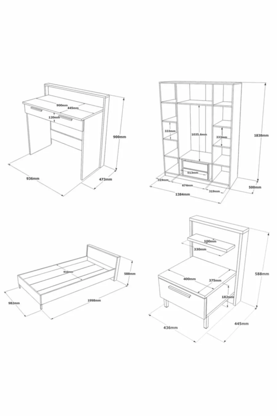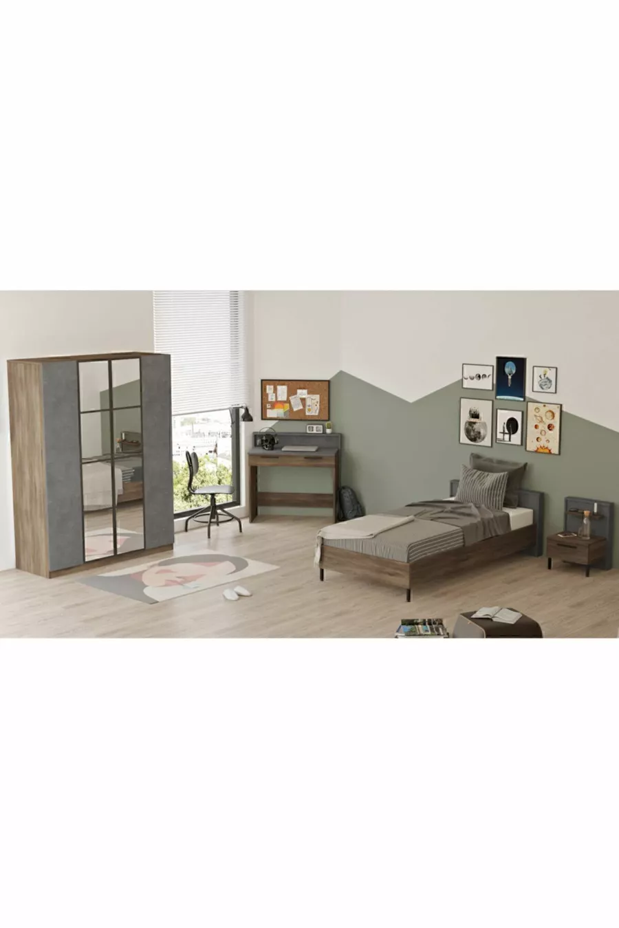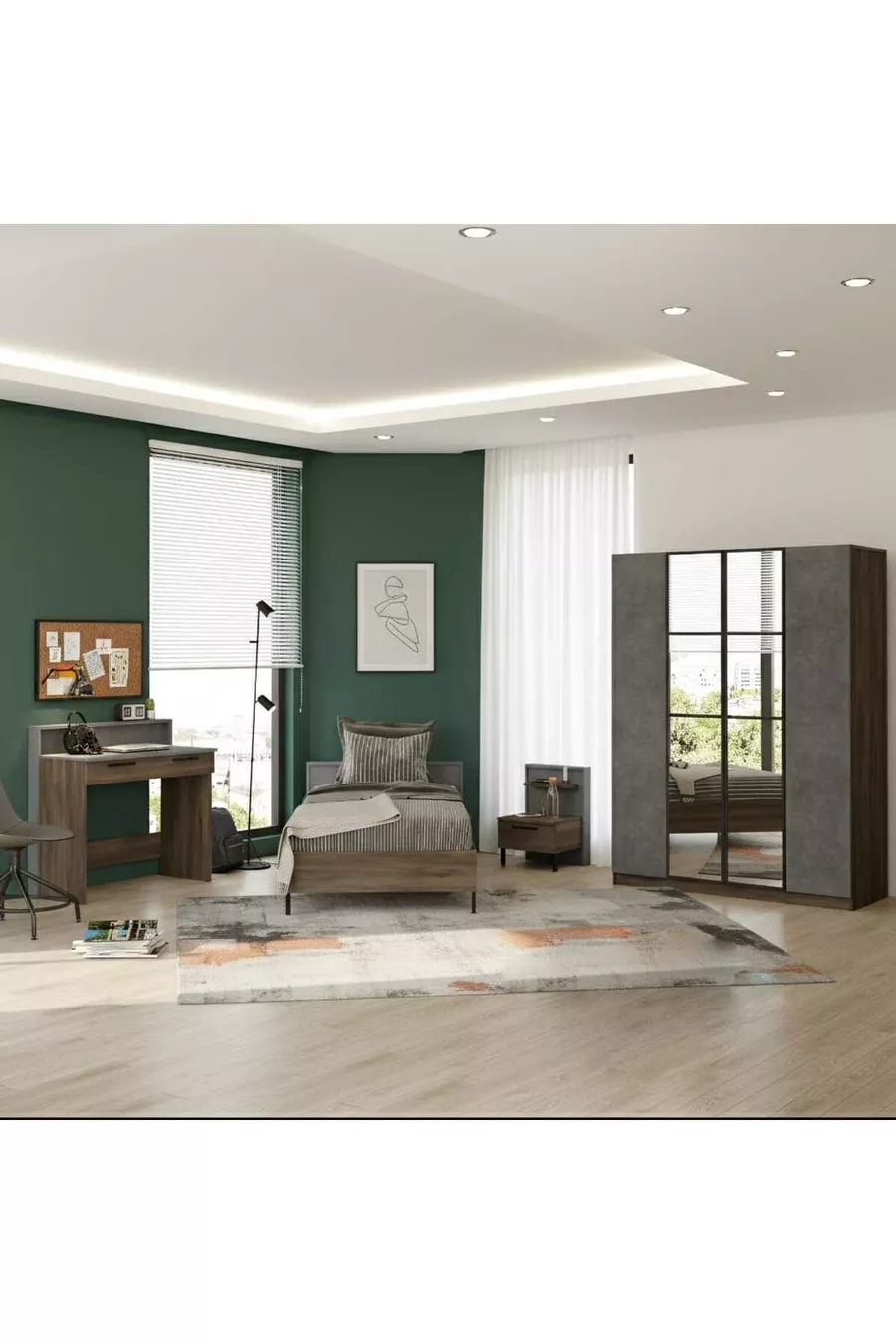 مجموعة غرفة نوم شبابية صغيرة من 4 قطع بالخرسانة والبيج -CG