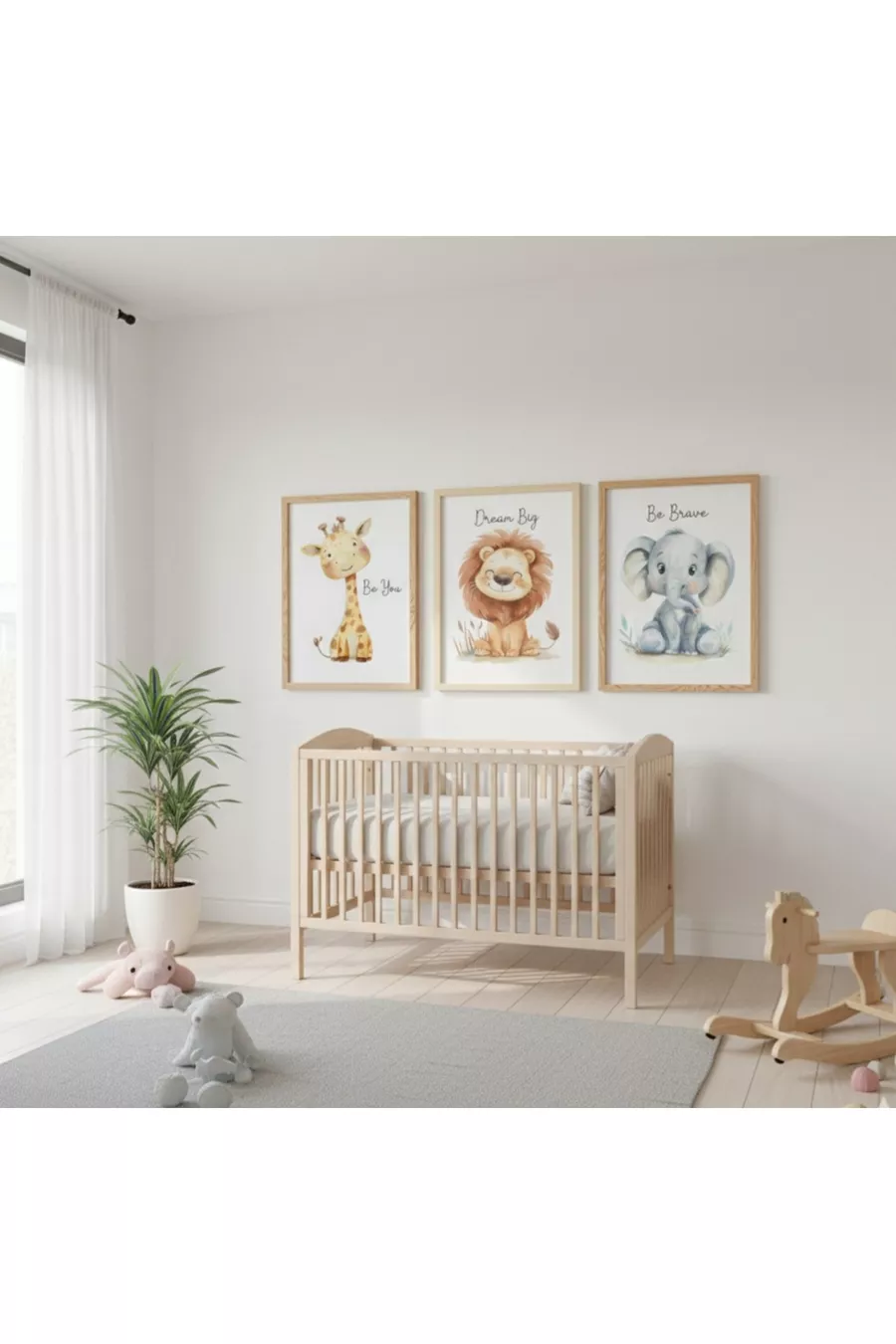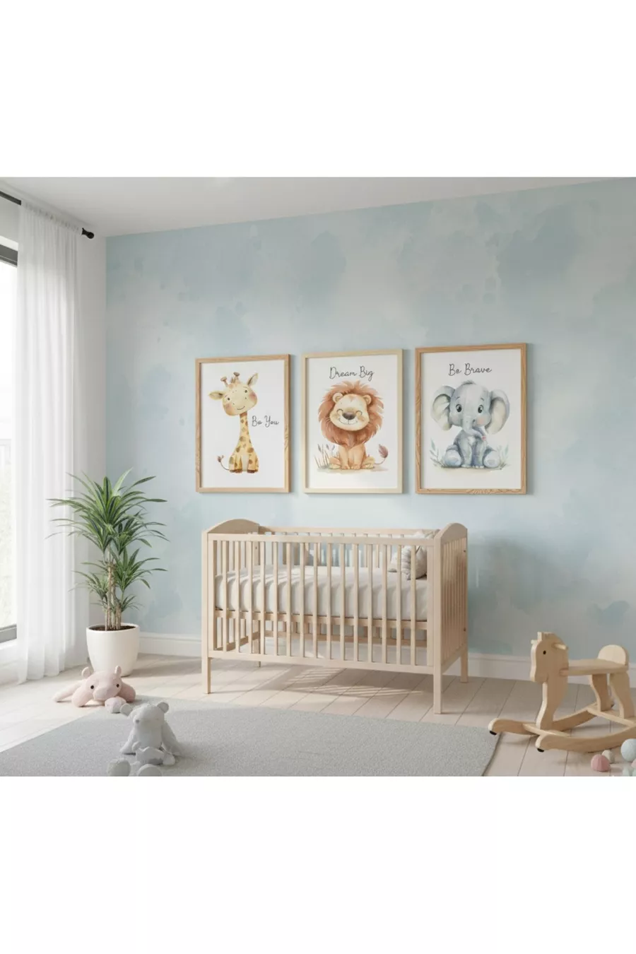 مجموعة غرفة الأطفال الفاخرة "زين"، مجموعة من 3 لوحات حائط مطبوعة بالأشعة فوق البنفسجية بإطار خشبي.